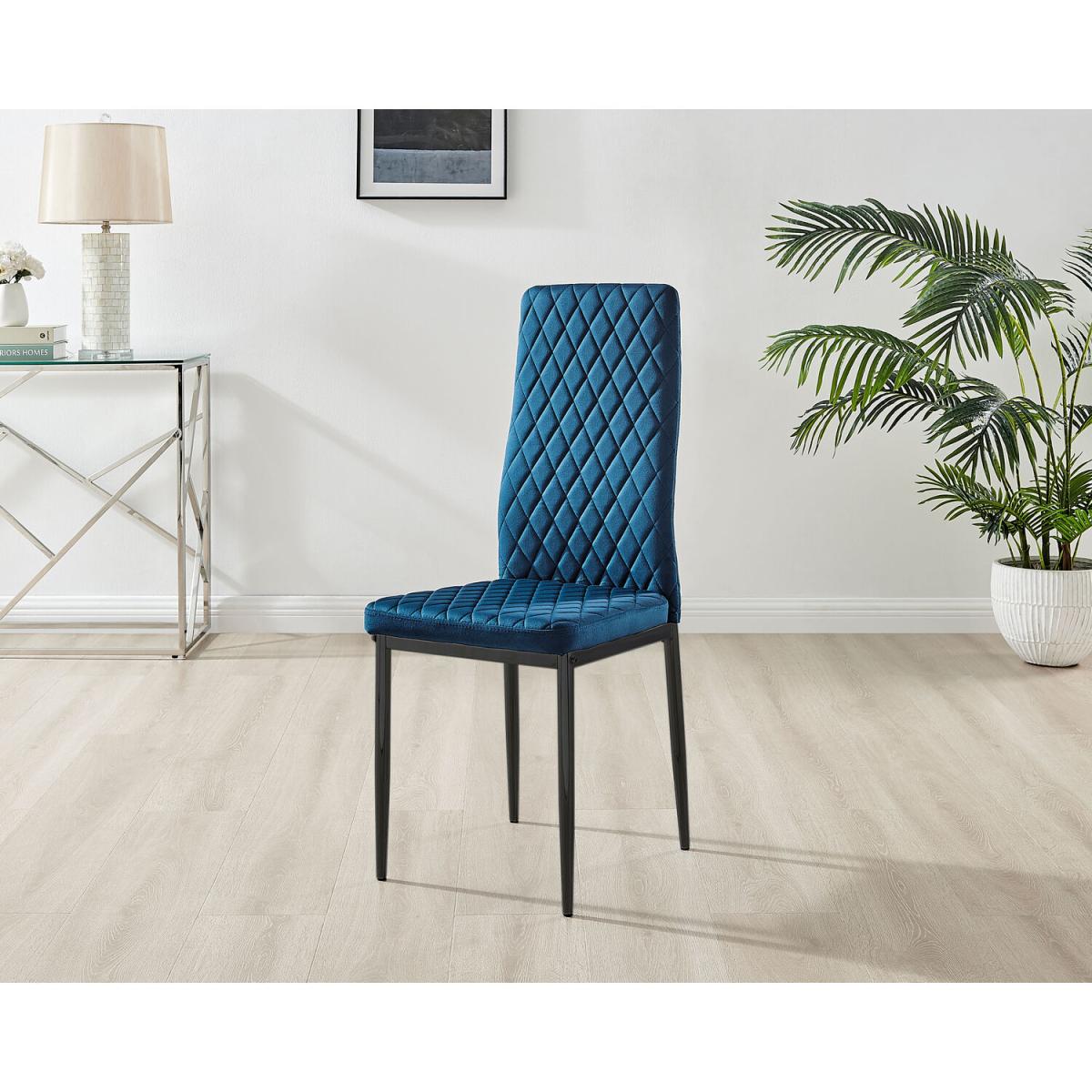Upholstered in soft touch velvet and finished with diamond pattern stitching the Milan dining chairs would seamlessly fit in with most dining spaces, whilst not compromising on either style or comfort. The stylish shiny chrome silver leg and hatched velvet combination gives this chair a contemporary edge, whilst it's simple design allows for practical everyday usage. The chairs are made from high quality durable velvet that's easy to keep clean and are ergonomically designed for maximum comfort and support. They feature a deep foam seat cushion and plastic feet to protect the floor from any damage! At an unbeatable price you cannot go wrong with these chairs!