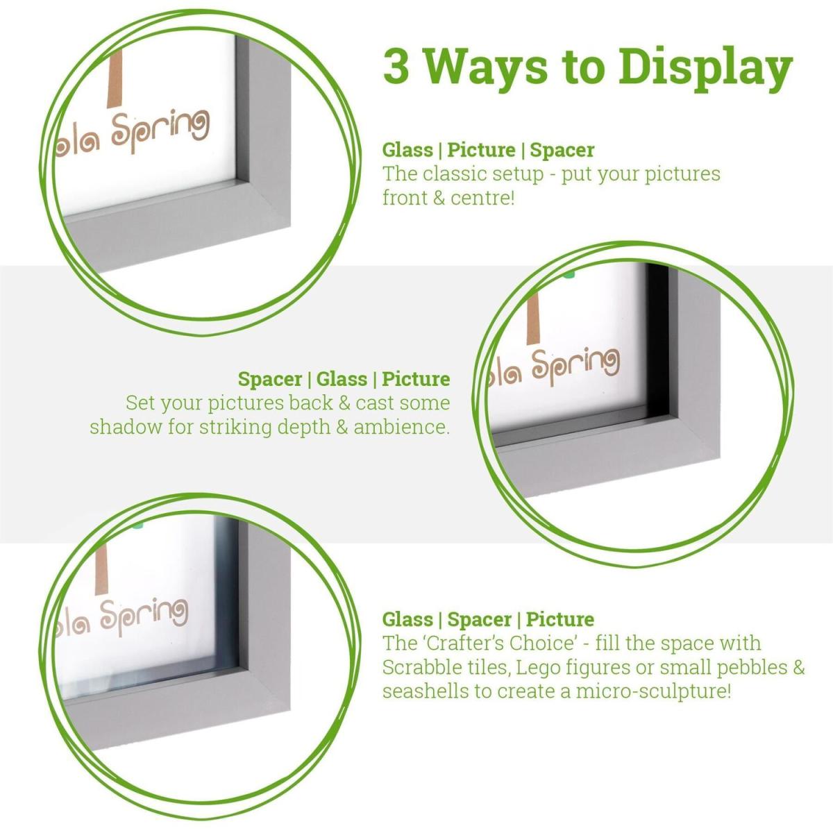 Give cherished memories and beloved friends and family members the showcase they deserve with this White 4 x 4in Box Picture Frame from Nicola Spring. When it comes to interior design, it's the walls and how you decide to decorate them that brings out the true character of your home. Our Nicola Spring 3D Box Frames are ideal for anybody looking to make a statement, with bold lines and a dynamic floating effect that demands to be the centre of attention. Each frame in our collection has been crafted from acrylic for the optimum blend of lightness and durability. Multiple hanging points on the reverse allow for seamless display in either portrait or landscape, while a neat folding strut offers that same flexibility for standing on a table, shelf or mantlepiece. What truly sets these frames apart from the competition, however, is the cover a sheet of genuine glass that bathes the photography or artwork behind it in a luxurious shine. For a final pice de resistance, these frames come with a removable 'spacer frame' that gives you the choice of three display positions. Combine all three across multiple frames for a striking multi-dimensional effect!