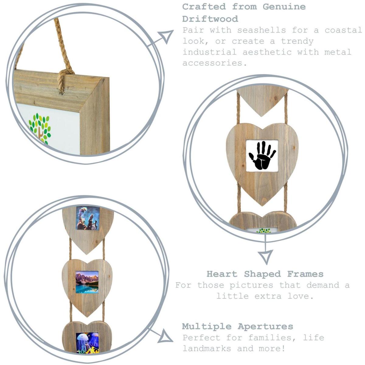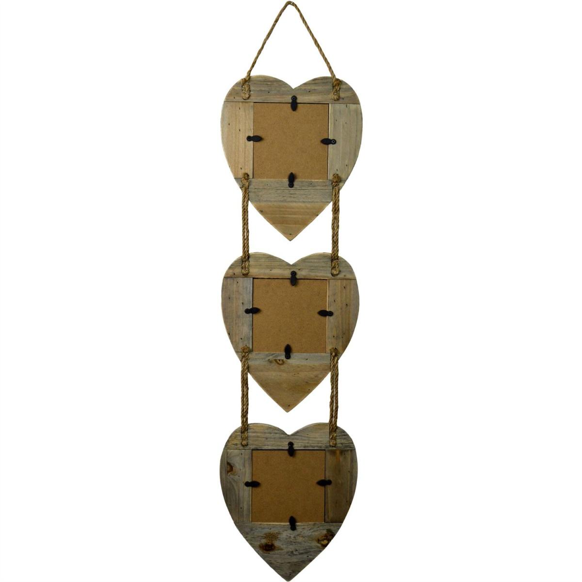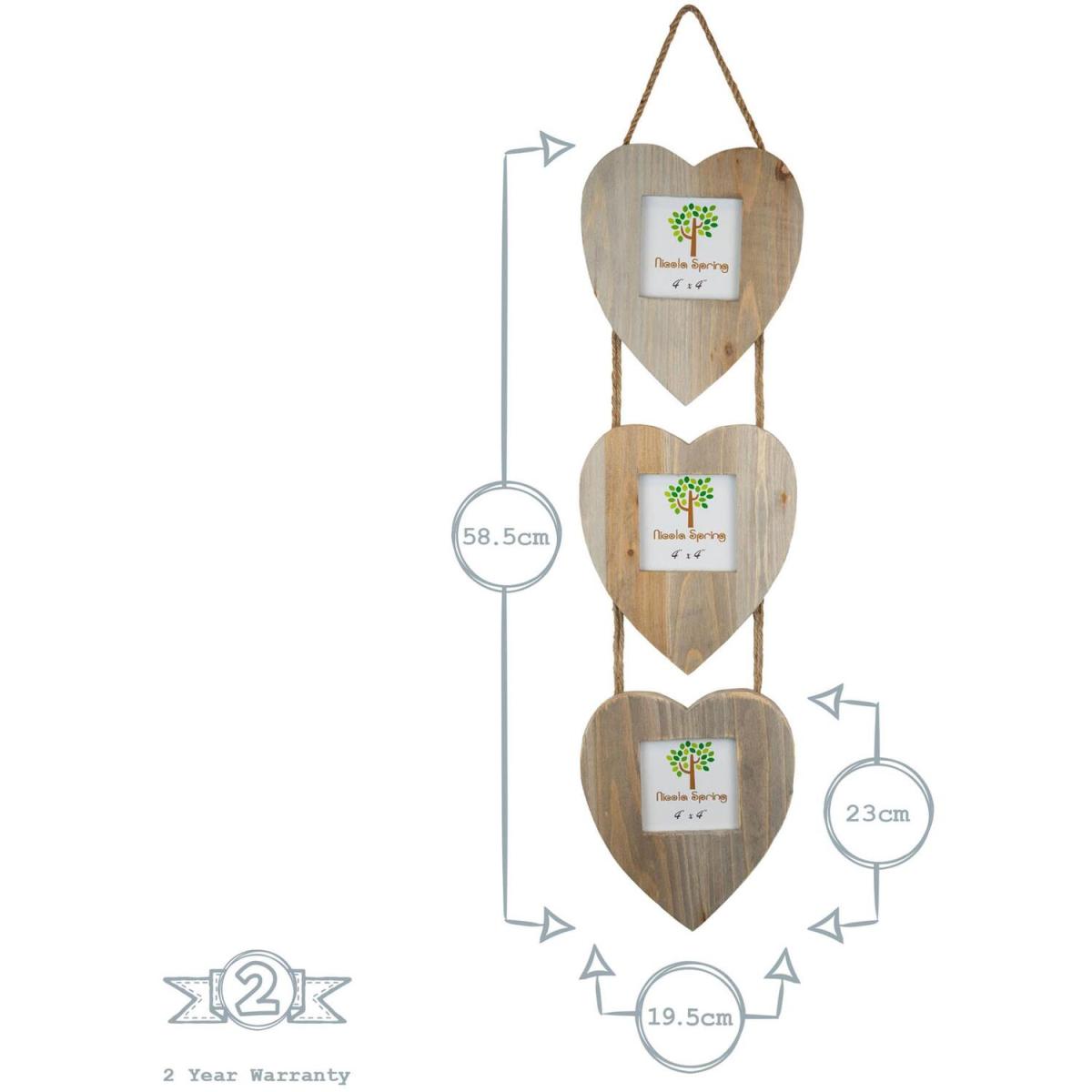 4x4" Rustic Hearts Hanging 3 Photo Frame Natural - Brown