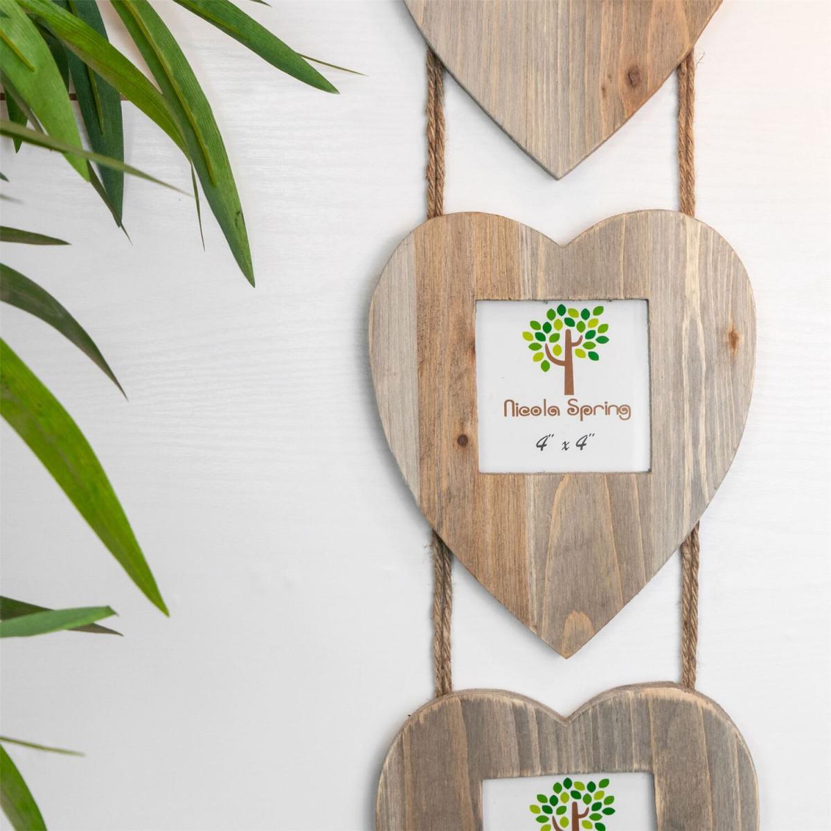I love how this little heart-shaped frame adds a cosy, rustic touch to any space. It works particularly well in country or farmhouse-style interiors, but can also bring warmth to more eclectic or boho rooms. The natural wood and brown finish make it versatile for pairing with both neutral and colourful decor. For styling, consider hanging it on a featured wall in a living room or hallway, paired with other natural textures like wicker or linen. It’s especially charming when filled with small family photos or cherished mementoes, creating a personalised yet understated display. Keep it simple and let the hearts be a focal point, balanced with minimal surrounding decor to let its handmade appeal shine through.