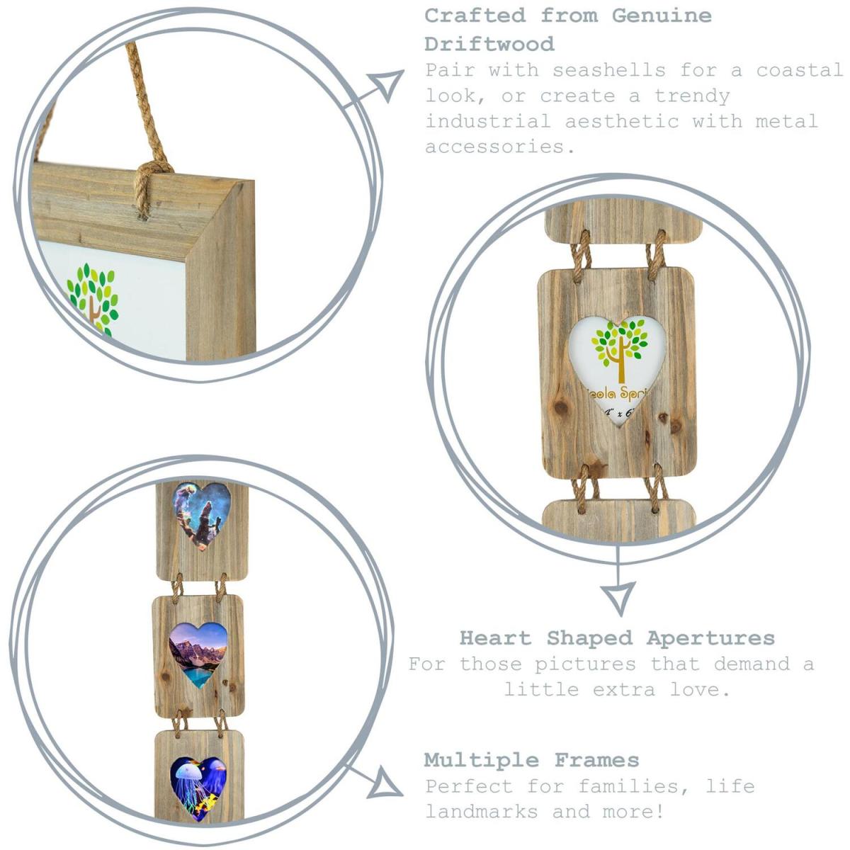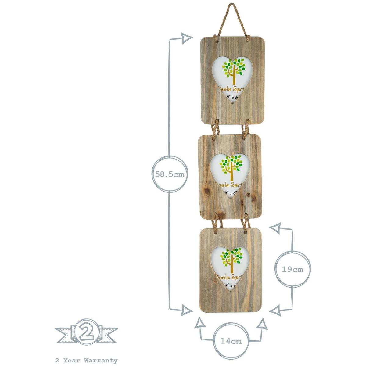 4x6" Rustic Hearts Hanging 3 Photo Frame Natural - Brown