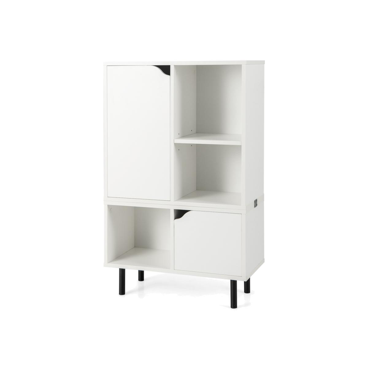 The freestanding open bookshelf offers endless possibilities for storage and display. The stackable design makes it easy to move or reposition the bookcases as needed. Metal hinges make bookcases more flexible. The open cubes and enclosed cabinets offer adequate storage space. Besides, a 3-position adjustable shelf provides maximum versatility for organizing items of different heights.