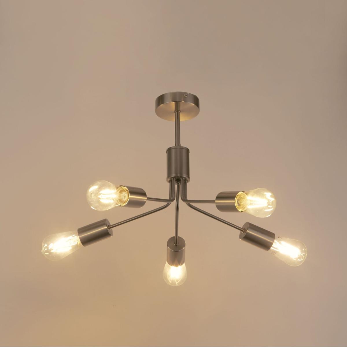 Infuse an industrial ambiance into kitchens or living rooms using this 5-light chrome ceiling light. Equipped with satin silver lamp holders, each bulb extends to radiate light, ensuring comprehensive illumination and a captivating, modern feel in the room. Bulbs not included. We recommend 3 x E27 bulbs.