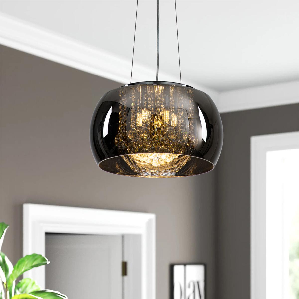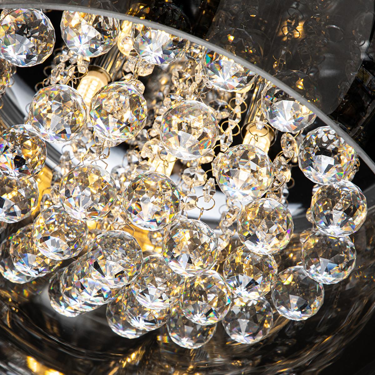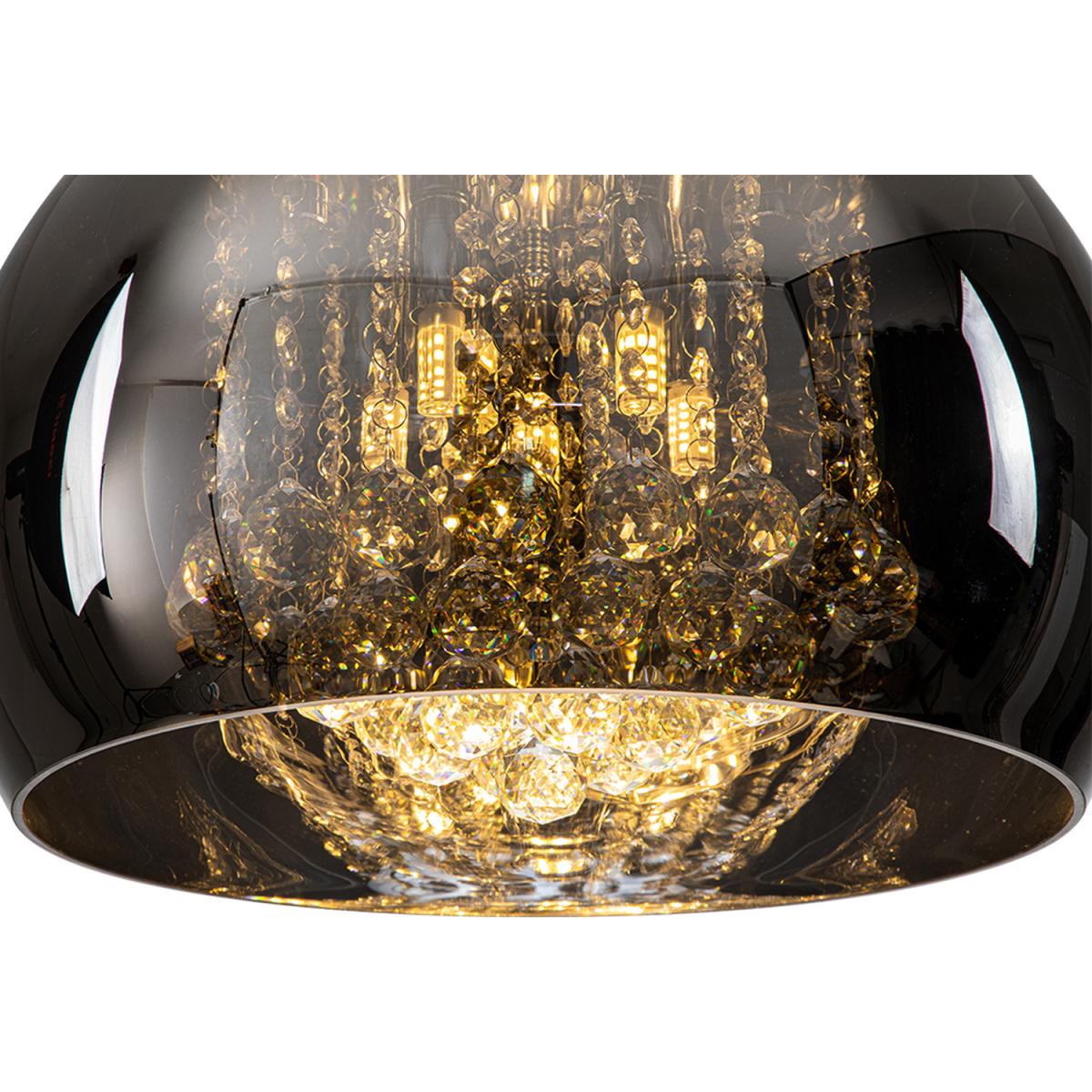 This luxurious chandelier is the perfect addition to your bedroom or living room. The transparent crystal has high gloss and can easily emit dazzling light. Anthracite glass not only protects the bulb and thus prolongs its lifespan, but it also adds an elegant ambiance to the surroundings.