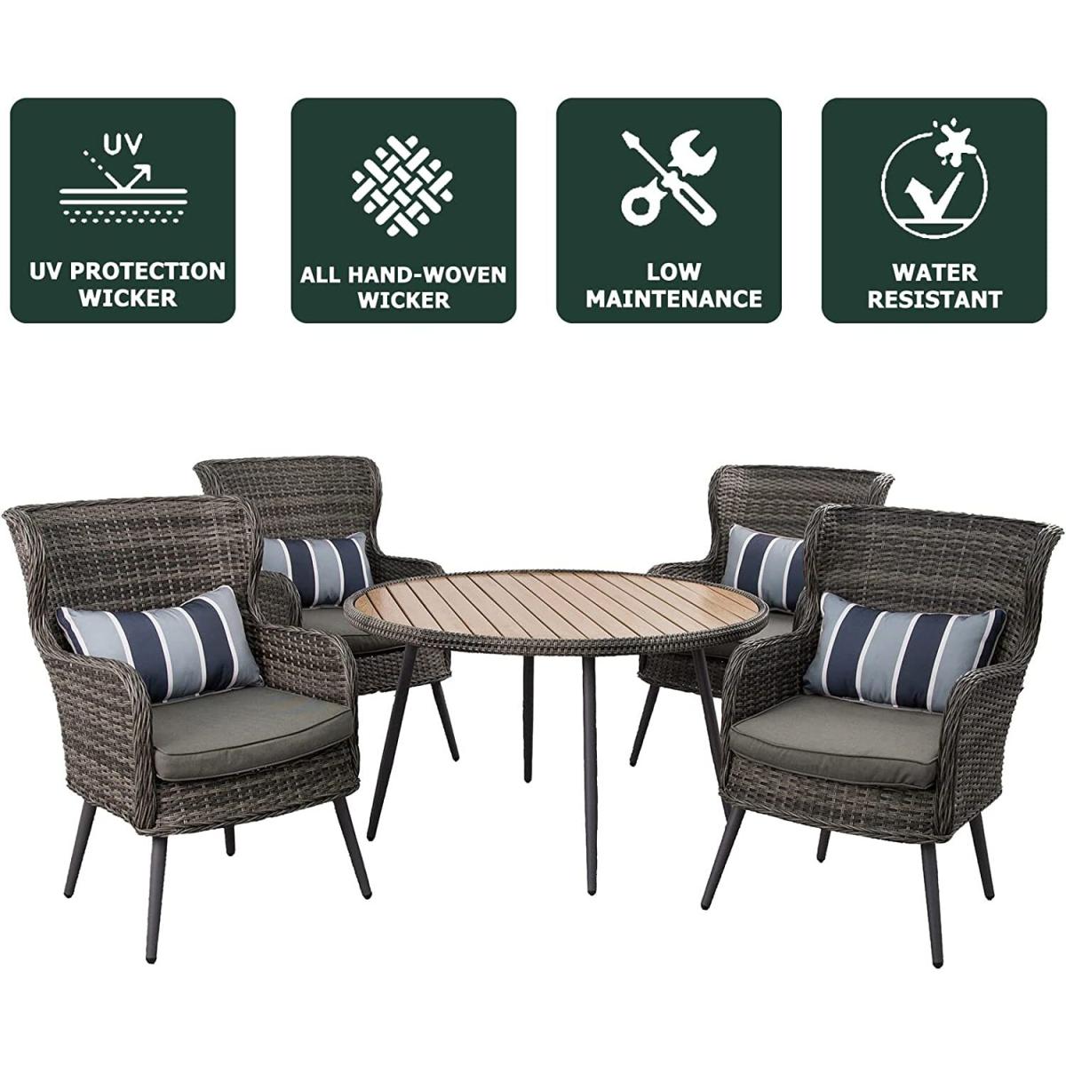 5 PCS Luxury Rattan Dining Set Table Chairs Set - Yellow