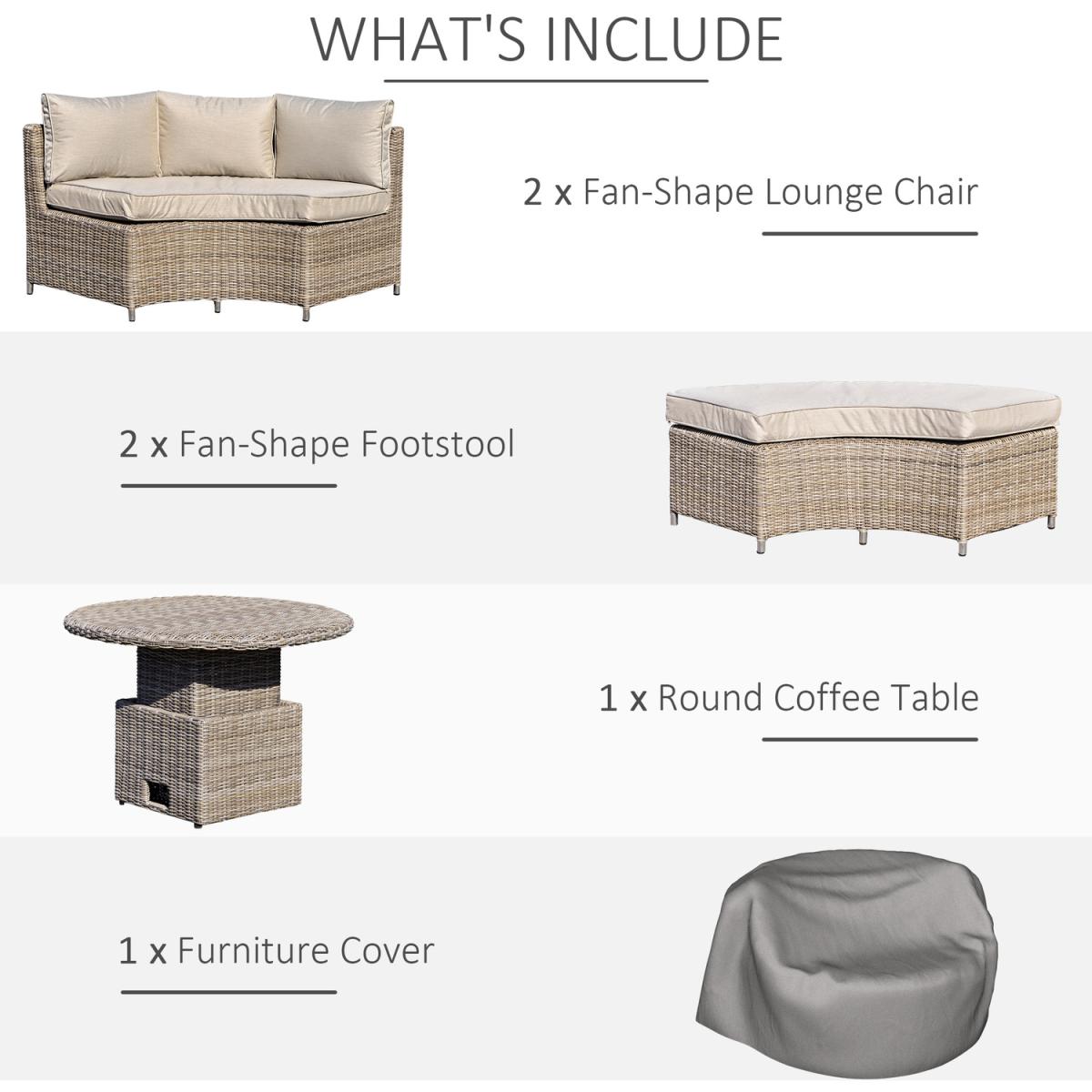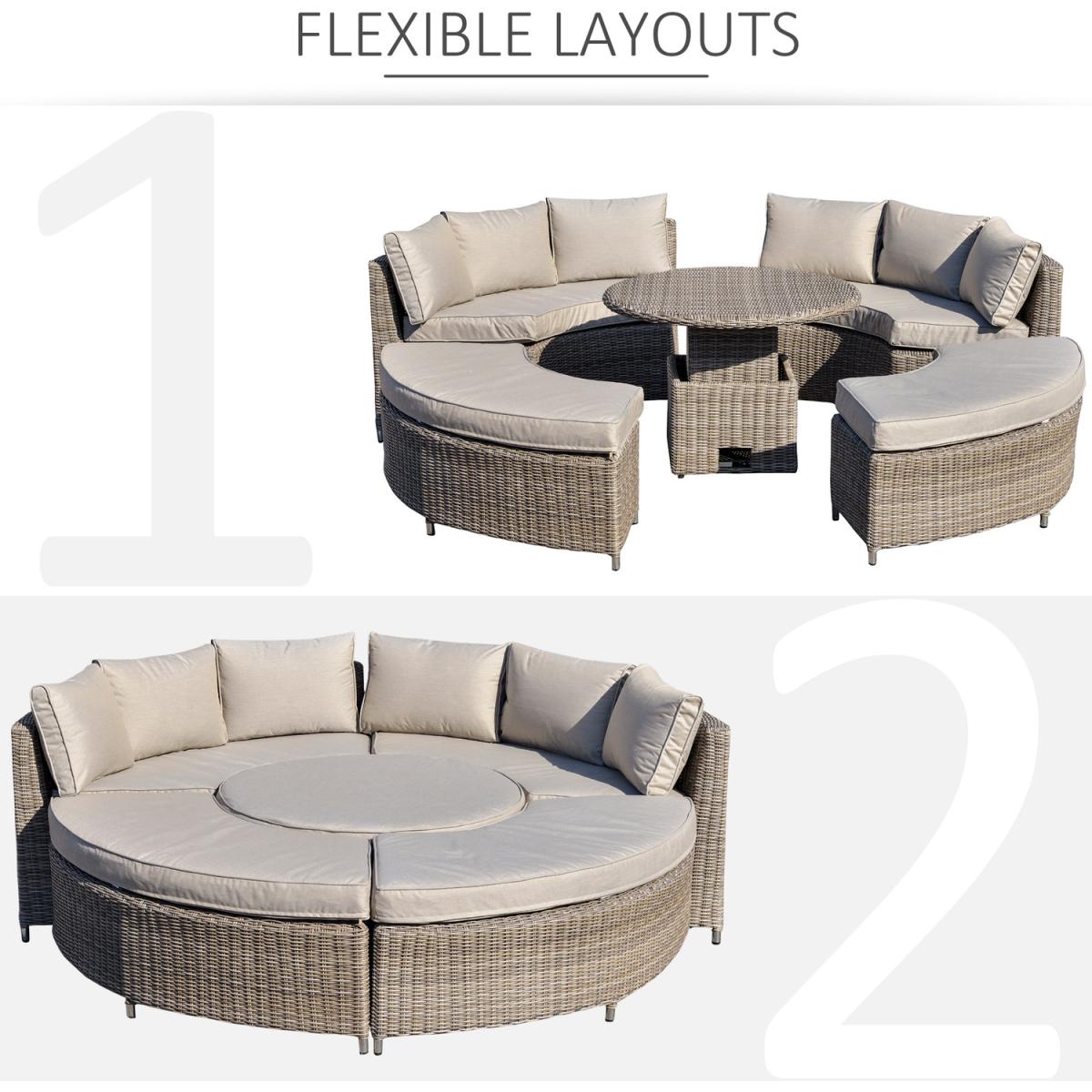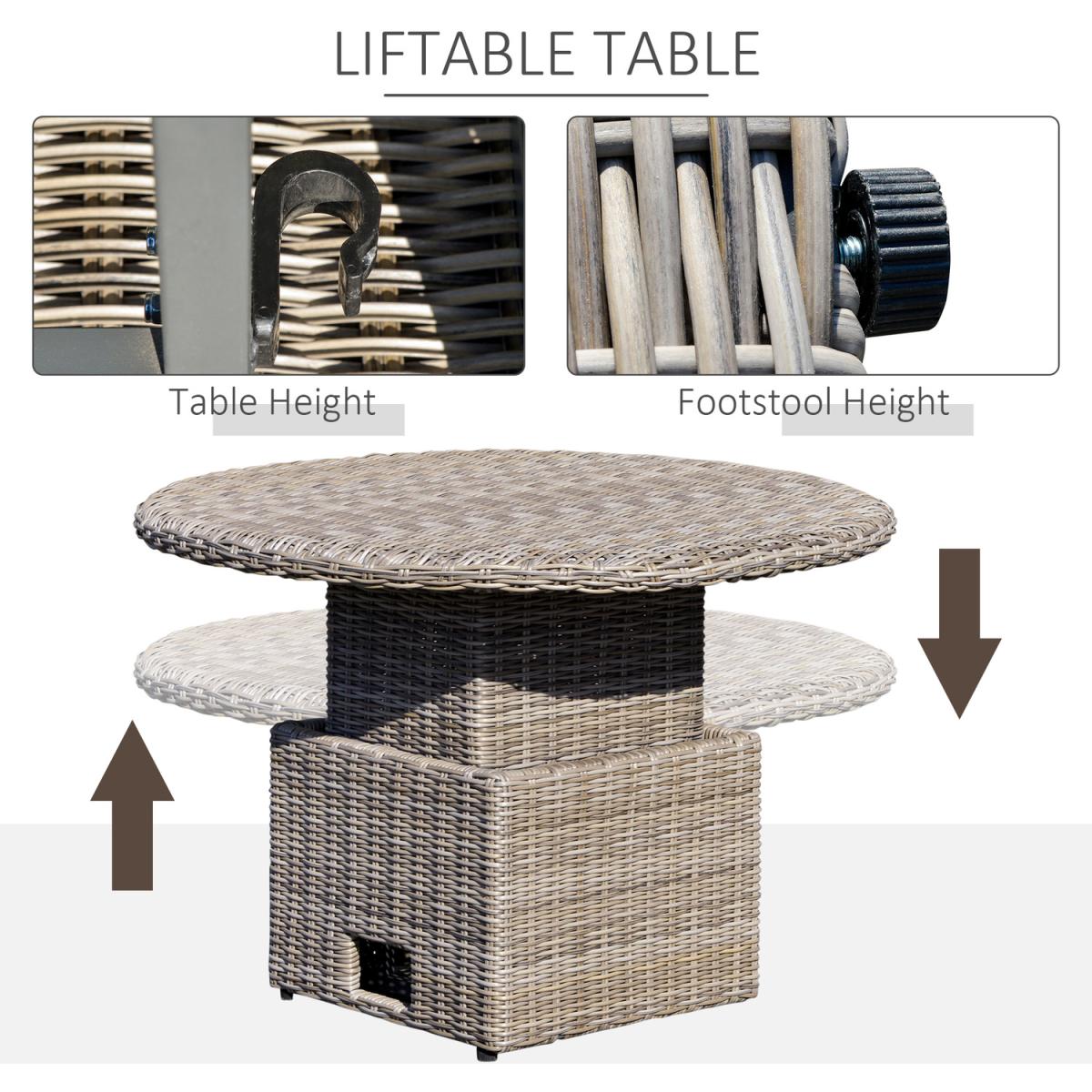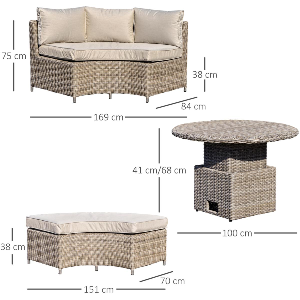 Please Note: We only offer curbside delivery for this item. We cannot deliver this item to your room of choice or to properties above ground level. Transform from sleeping to lounging with just one set - this outdoor set from Outsunny. Thanks to the height-adjustable coffee table, you can pull all pieces together to become level and make it a large bed. The included cushions keep you comfortable whether you are sitting or snoozing. Each piece uses aluminium for the central core, wrapped in PE wicker to make it stylishly garden-ready. A set made to bring everyone together or give you some well deserved time out.