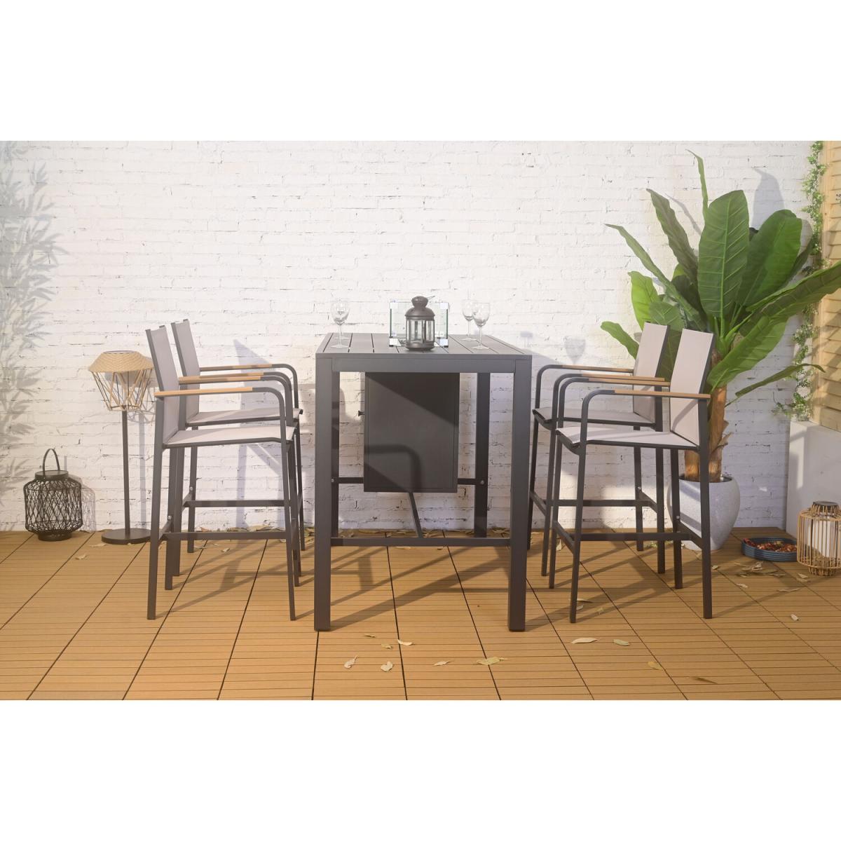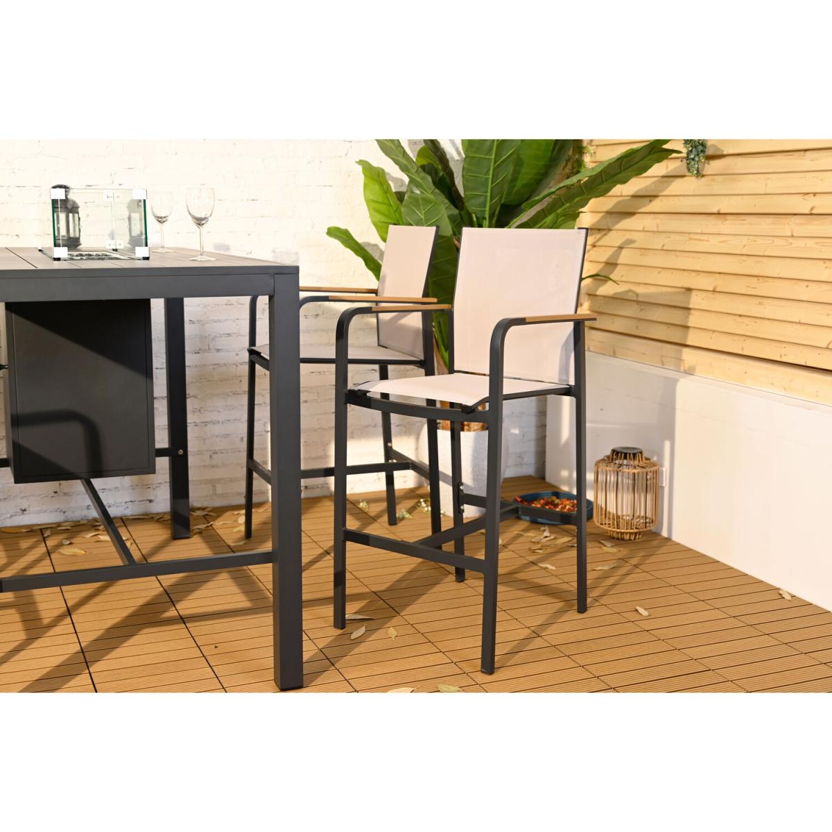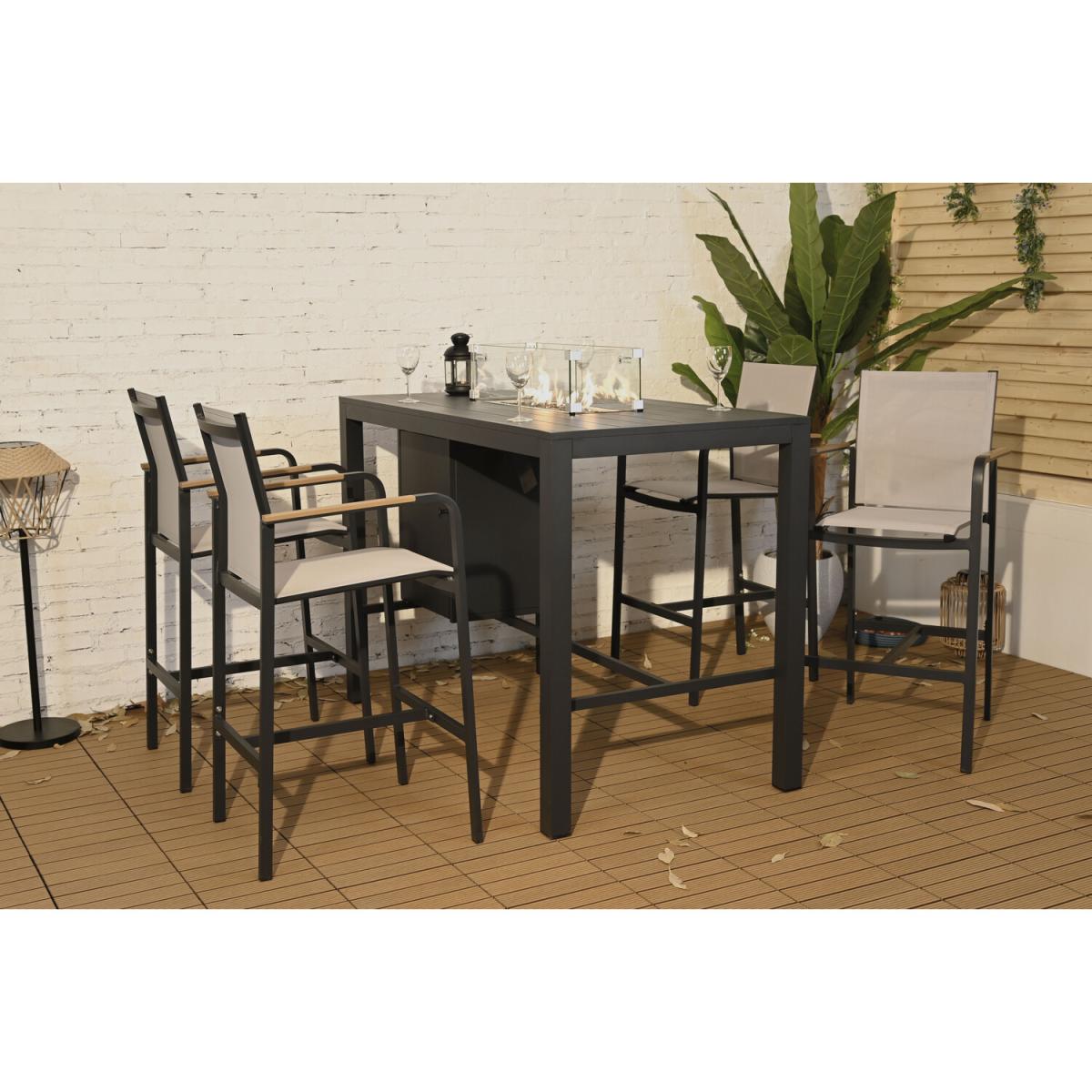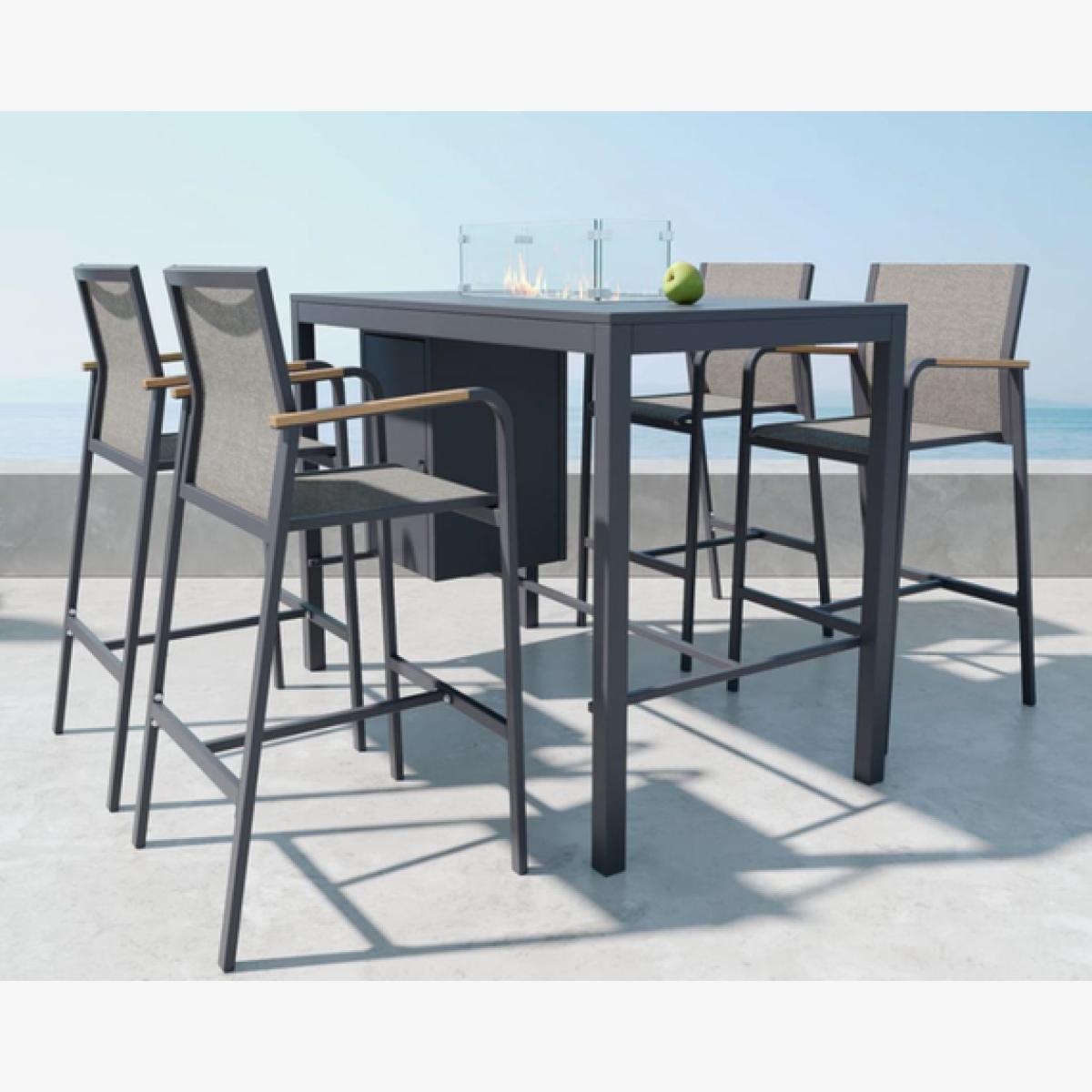 This Olympus Bar Set is a stunning and contemporary set that will look fantastic in any garden, patio or decking. The integrated fire pit is perfect for garden parties, BBQs or warm cosy evenings. The lightweight aluminium frame features a modern black finish that will complement your garden greenery or decor. The chairs and table have angled backrests and footrests for ultimate comfort whilst soaking in the summer sun. This gorgeous garden furniture will make a wonderful statement and is guaranteed to impress your guests.