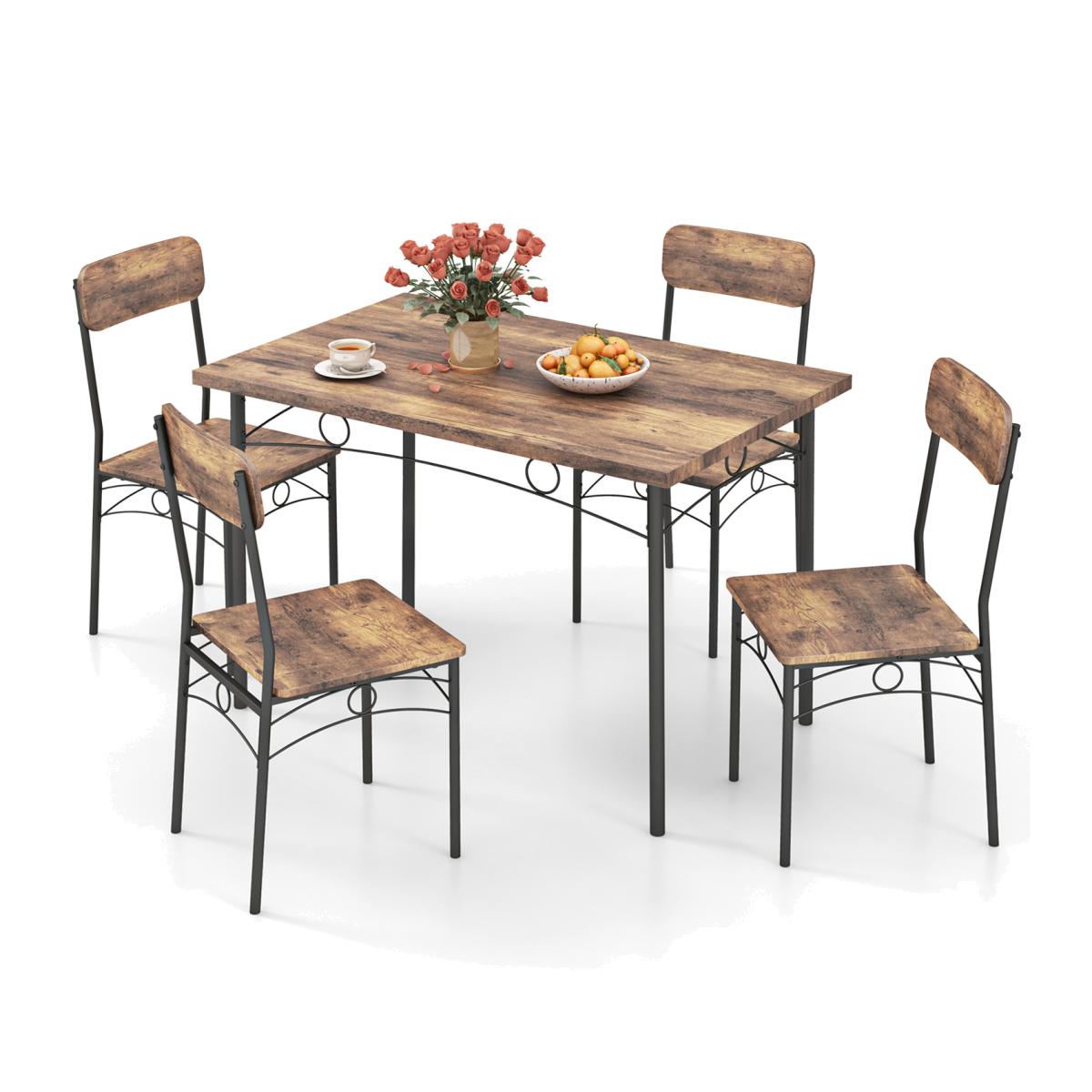 5-Piece Industrial Kitchen Dining Table Set - Brown