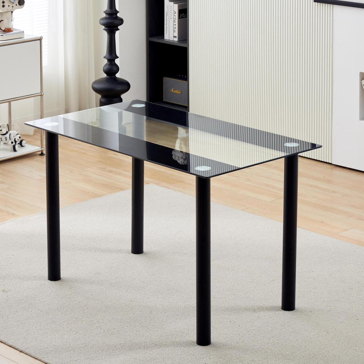 I love this glass dining set for its sleek, modern appeal and its versatility in various interiors. The black finish grounds the look, making it a great addition to contemporary spaces or monochrome schemes, while the glass surface adds a touch of lightness that keeps the room feeling open and airy. When styling, consider pairing it with bold or colourful accessories to create contrast, or keep it minimalist with neutrals for a sophisticated vibe. Practical tips include adding a centrally placed runner or placemats to protect the glass and introducing textured or upholstered chairs to add comfort and visual interest. This set works well in open-plan dining areas or kitchens where clean lines and modern aesthetics are desired.