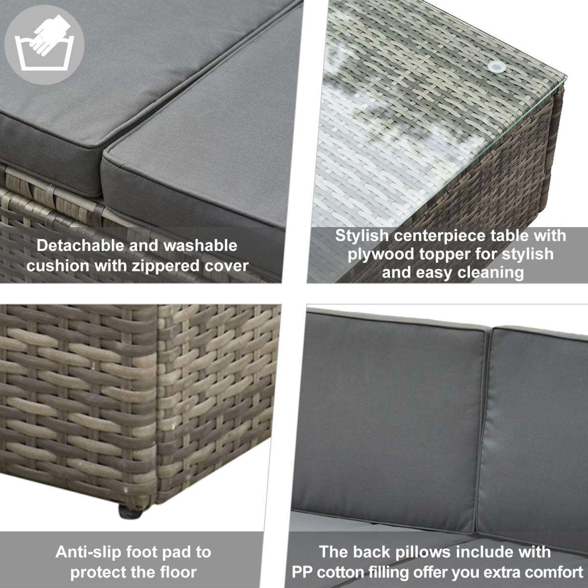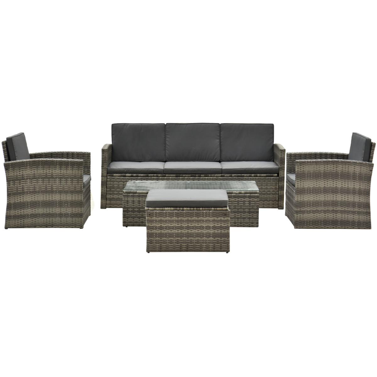 5 Piece Outdoor Seating Storage Rattan Imitation - Grey rattan, Deep grey cushion