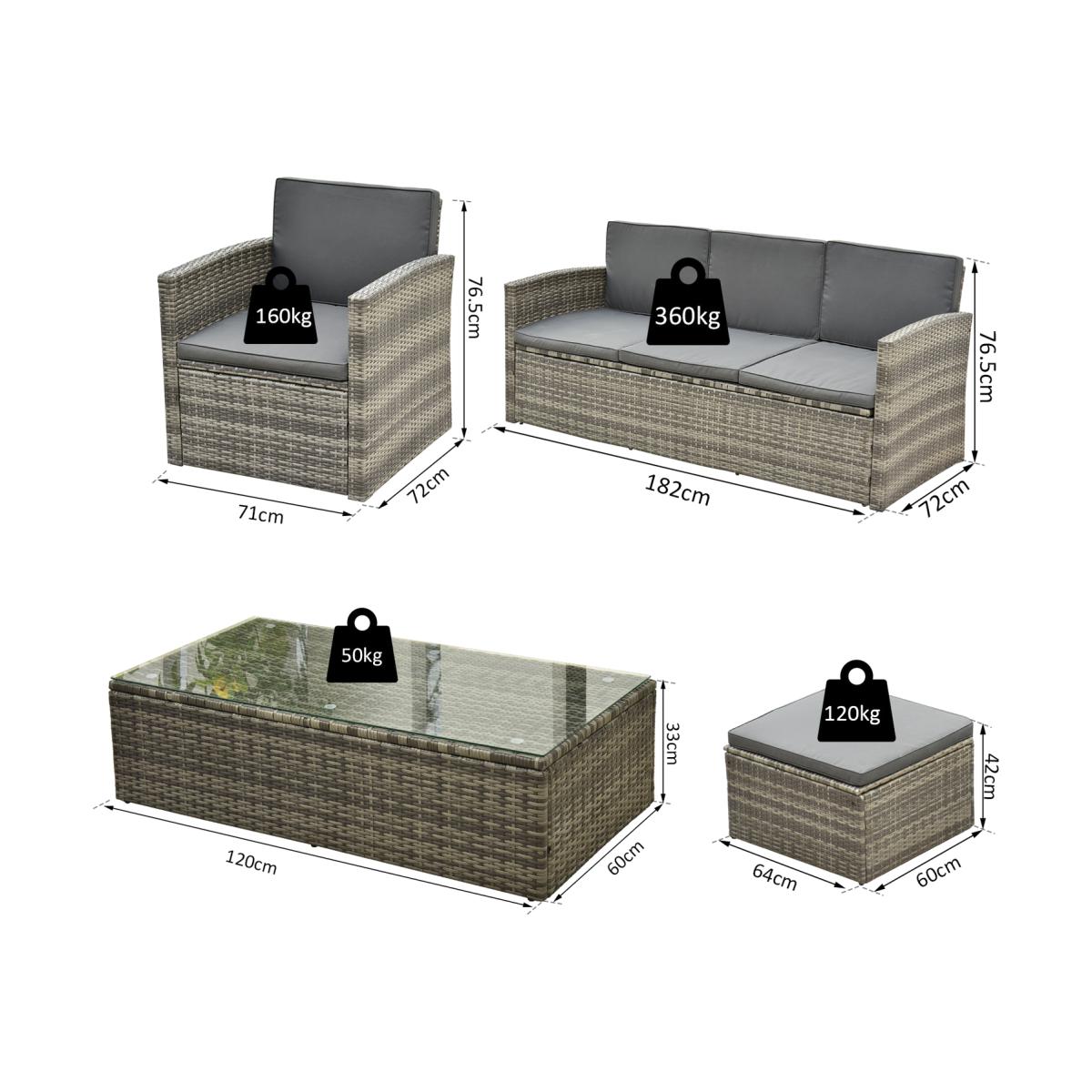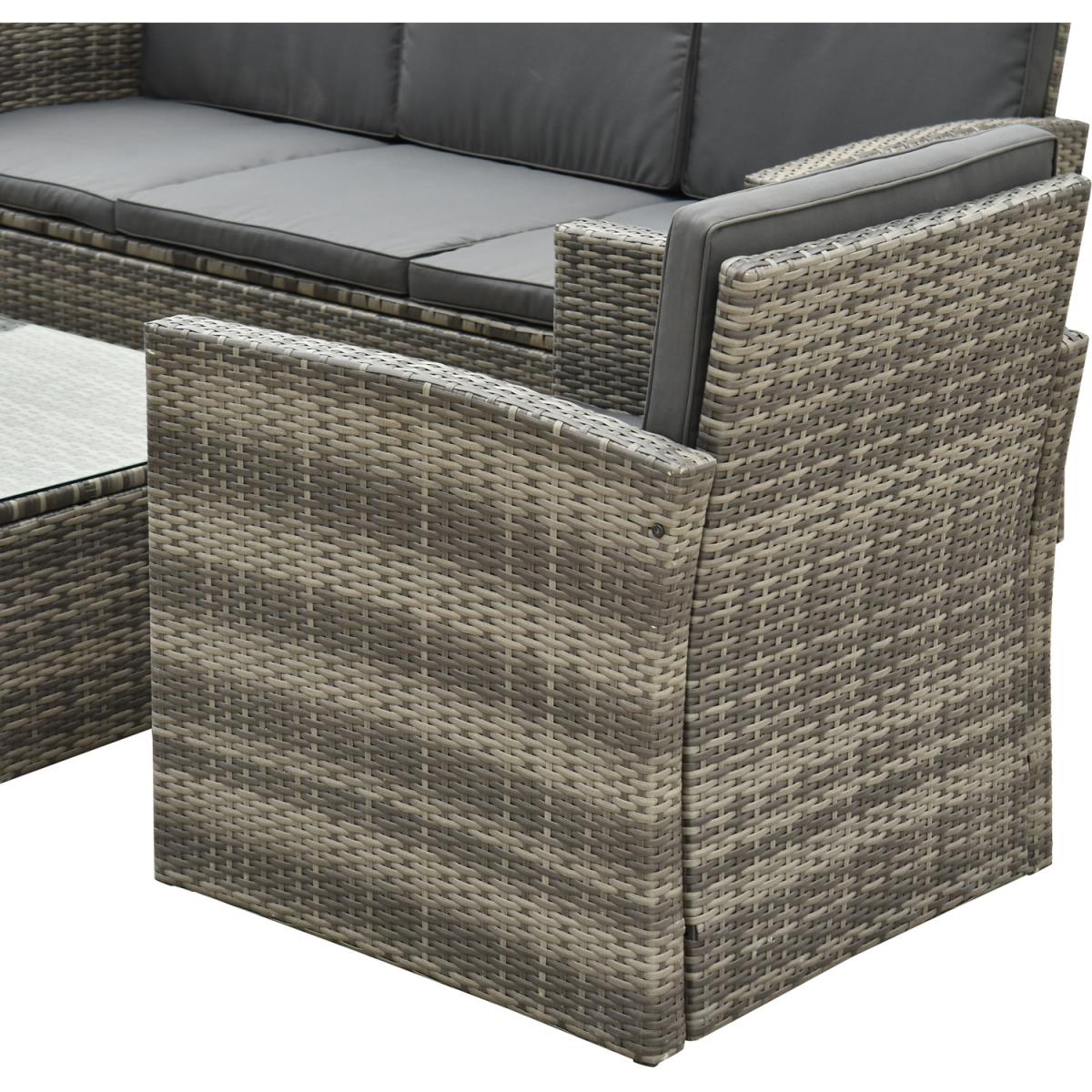 Have look this five-piece rattan sofa set from Outsunny for a sublime blend of style and comfort. Using thick and rigid plastic, the three-seater sofa and the table are crafted into a rattan-imitation look, allowing them to blend in beautifully with your other garden furniture. Empty compartments are situated beneath each piece for discreet storage to help make your outdoors tidier, and thick cushions feature on the seats and backs to allow you to relax comfortably all day and evening long.