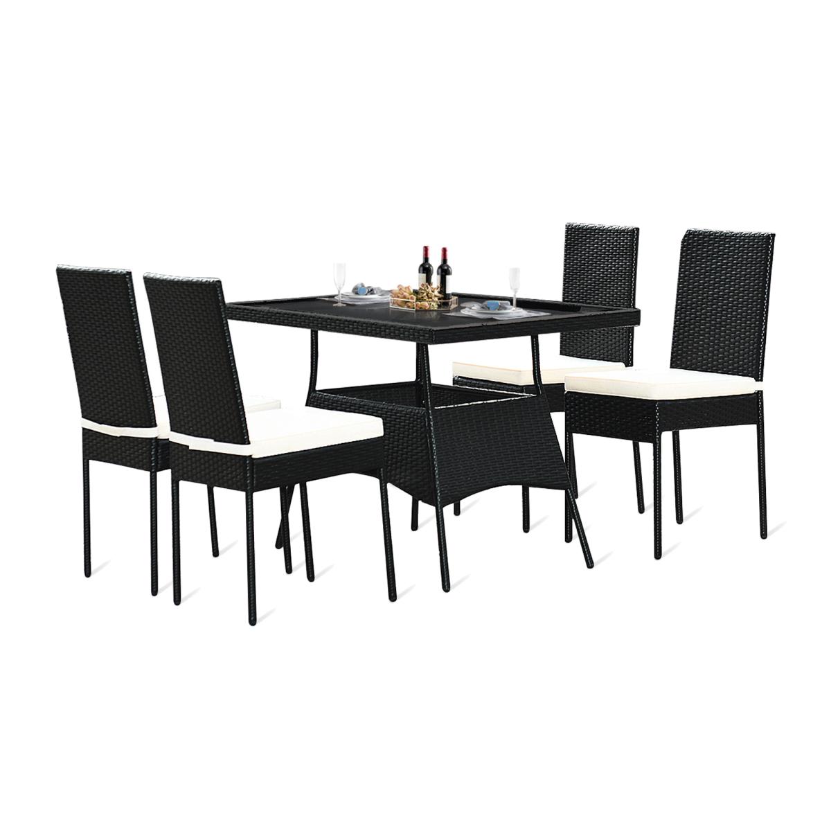 5-Piece Patio Rattan Wicker Dining Set - Black