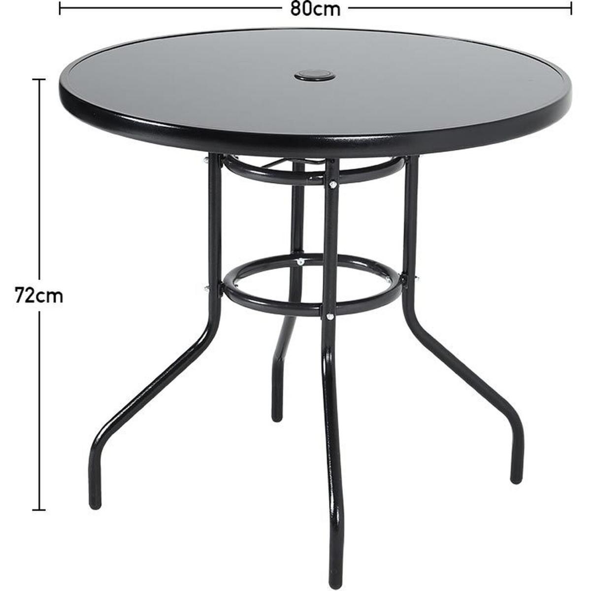 This five-piece set is a practical choice for those looking to add a sleek, modern touch to their outdoor space. Its black finish lends itself well to contemporary or minimalist gardens, but it also works with rustic or Mediterranean styles when paired with colourful cushions or, for a warmer look, wooden accessories. I love how versatile it is - you can dress it up with patterned tableware or keep it simple for a more relaxed vibe. Practical styling tips include adding a mix of lightweight cushions for comfort, incorporating a small outdoor rug underneath to define the dining area, and placing potted plants around for a touch of greenery. It’s ideal for smaller patios or balcony gardens, offering functional, stylish outdoor dining without overwhelming the space.