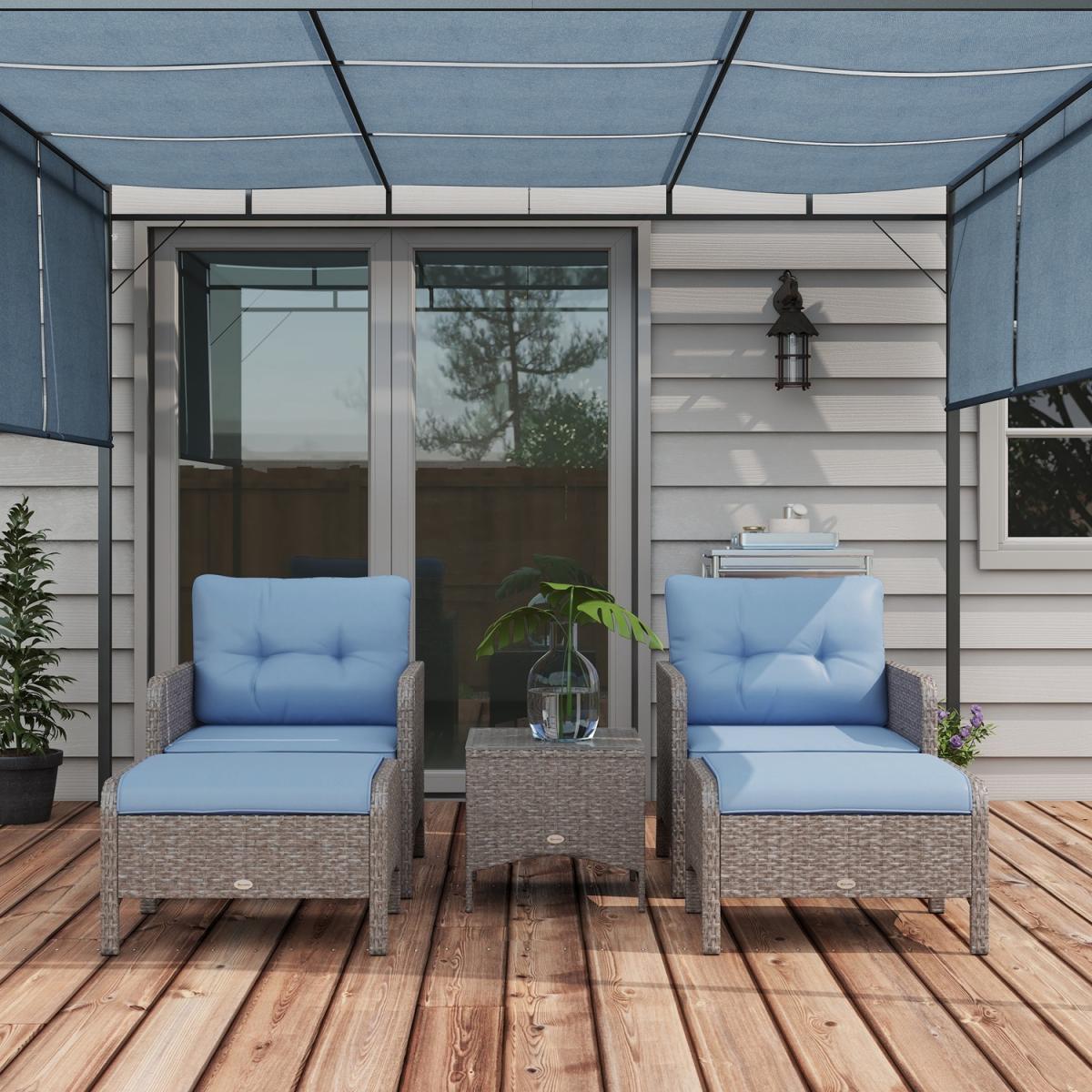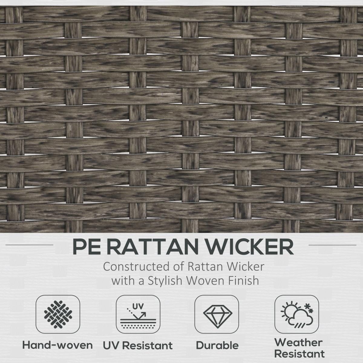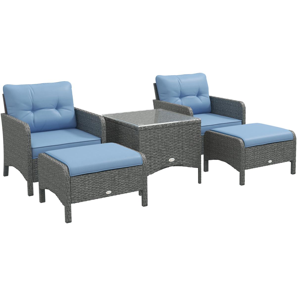 Sit back and relax in complete comfort with this rattan chair and stool set from Outsunny. Formed of five pieces, the set features two armchairs, two footstools and a matching coffee table. Made from handwoven PE rattan, each piece is weather resistant and low maintenance, with a steel frame underneath for extra support and stability. Two plush cushions on each chair ensure you'll be relaxing comfortably for hours on end, with the removable covers making them easy to take off and clean. With a tough tempered glass top, the table is also easy to clean, making this set a fantastic combination of style, comfortable and minimal hassle.