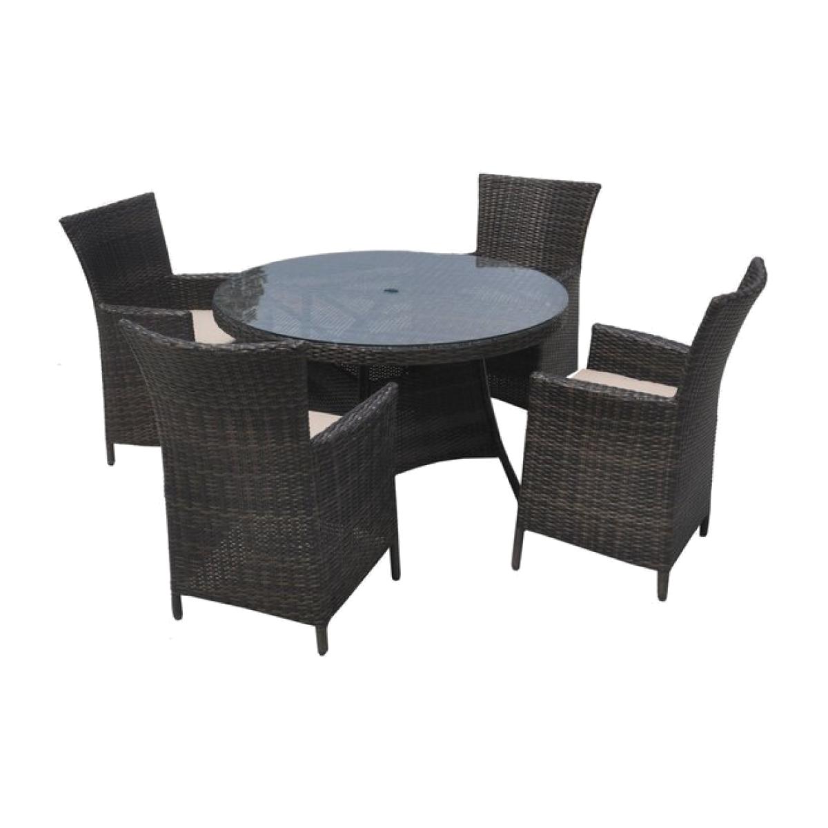 5 Piece Rattan Dining Garden Set with Cushion - Brown / 41kg
