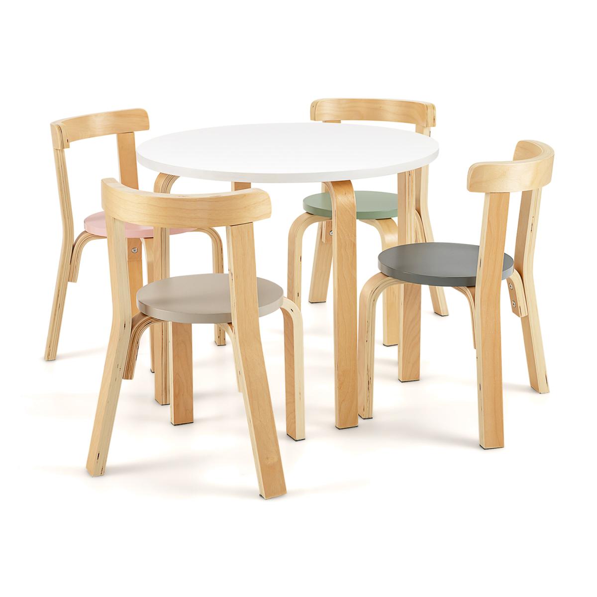 I’m a fan of this kids table set for its clean lines and sturdy ash-effect legs - it slots neatly into Scandi, modern or even eclectic playrooms without overwhelming the space. The muted grey seats and curved backs give a subtle pop of colour while keeping things calm, and the wipe-clean tabletop means spills aren’t a drama. To style it, add a small felt or woven basket underneath for colouring pencils, and layer in a couple of washable cushions on the chairs for extra comfort. Position it near a low bookshelf or wall-mounted peg rail to keep books and artwork within easy reach - it’s a practical, versatile choice that grows with the child.