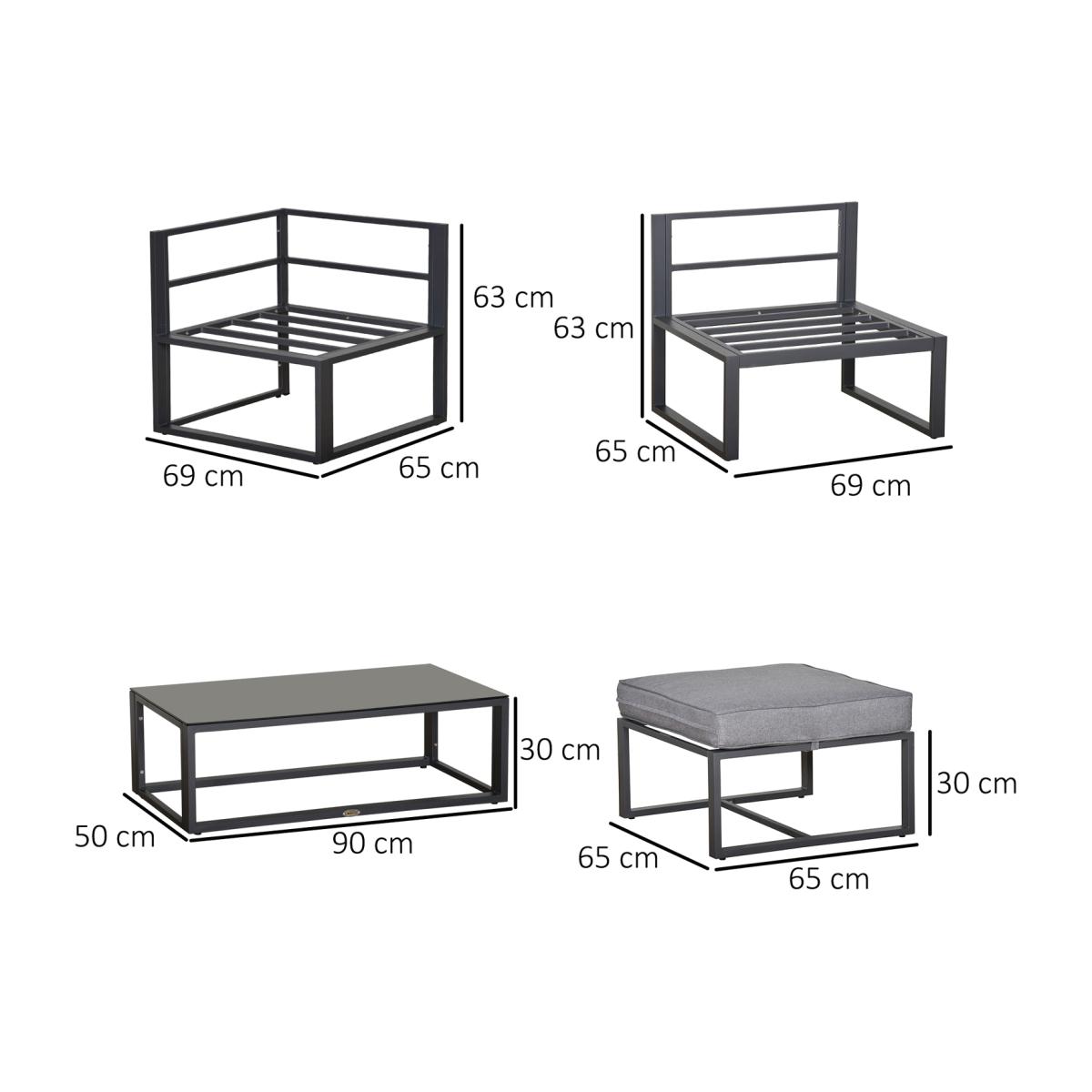 Understatedly stylish and extremely comfortable, this five-piece garden sofa set has it all. Includes an armless chair, two corner chairs, a footrest and a coffee table. Padded cushions and pillows on the seats and back for comfort, with removable and washable covers for hygiene. With a tempered glass top, the coffee table adds a sleek finishing touch to the set. A fantastic addition for your garden and outdoor areas, you'll love inviting friends over to relax and dine with you.