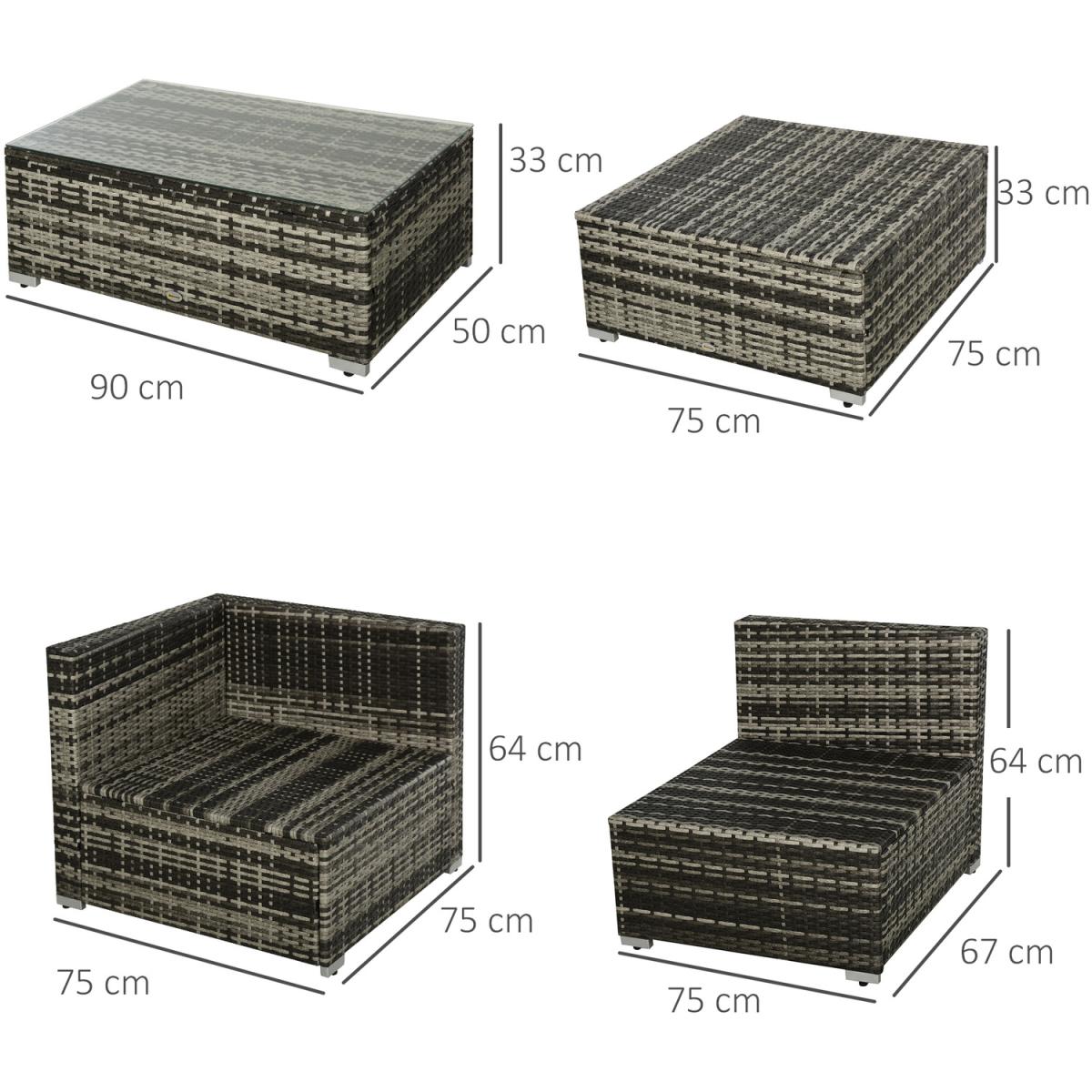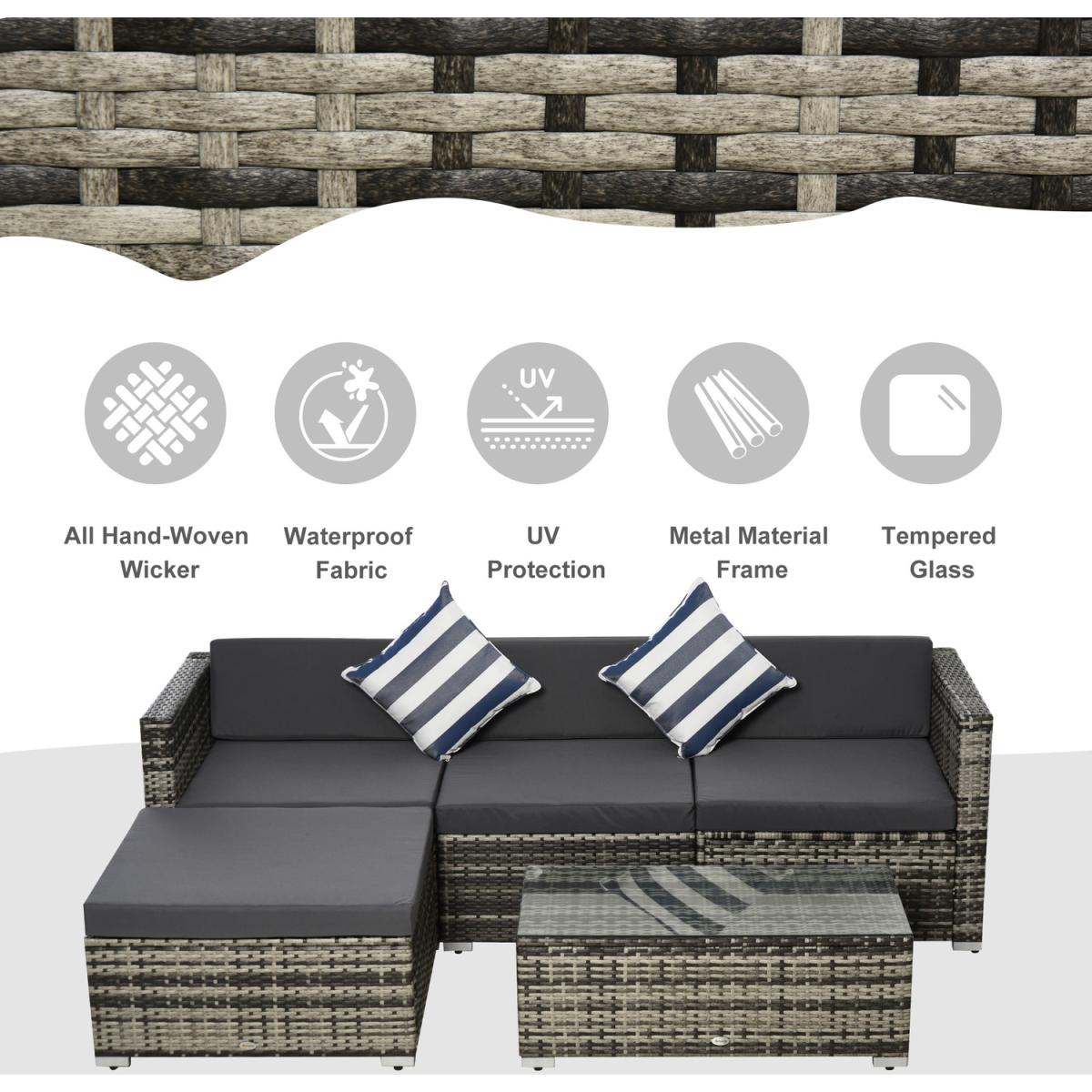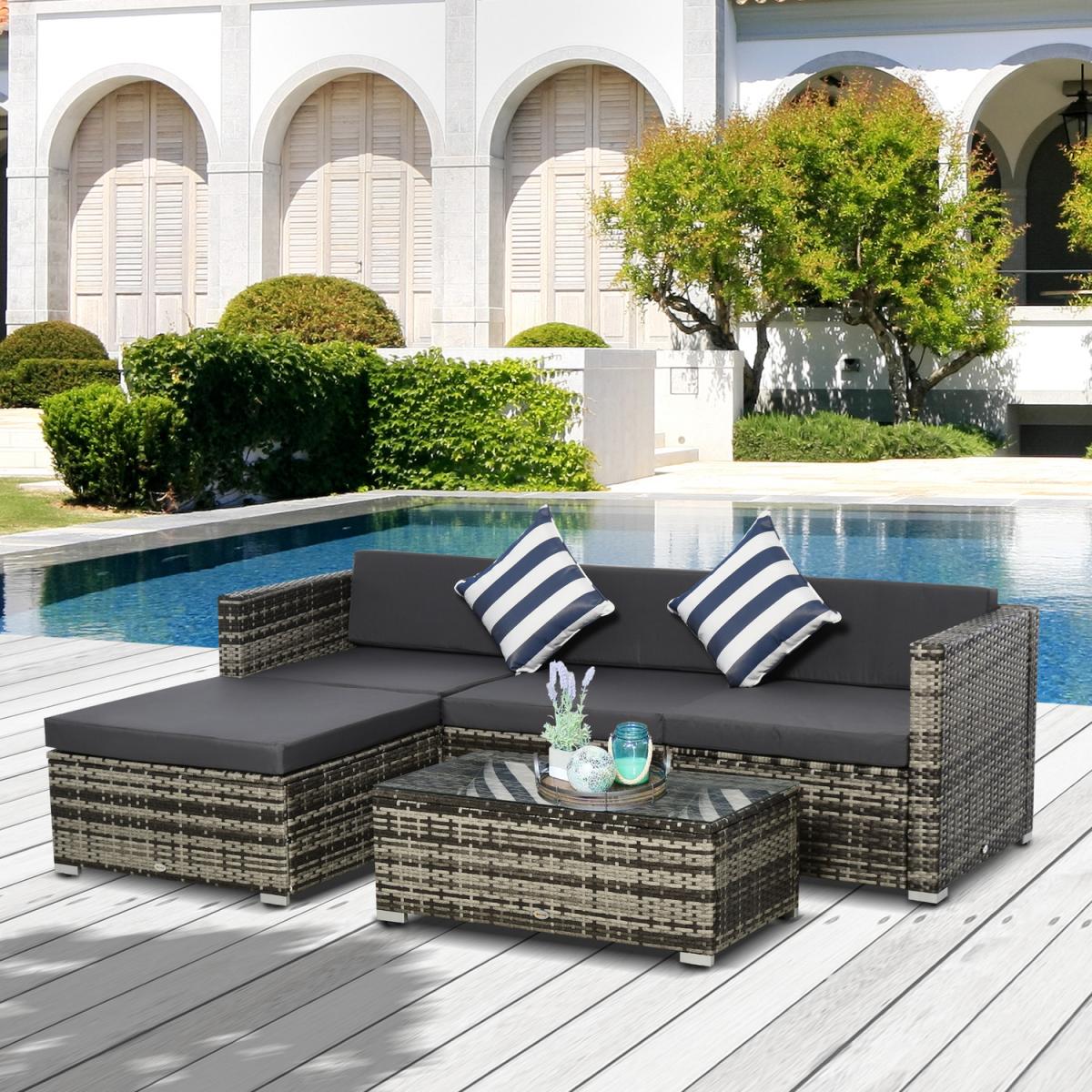 Brighten your backyard with Outsunny 5-Piece cushioned outdoor rattan wicker sofa sectional patio furniture set and make the outdoors just as inviting as your indoors. Oftentimes, due to uncomfortable seating or simply a lack of furniture, many outdoor environments go underused or ignored completely. Change all that with a simple, in one of our designer outdoor furniture set. Decorative and functional, the furniture set creates an inviting setting you'll want to use for years.
