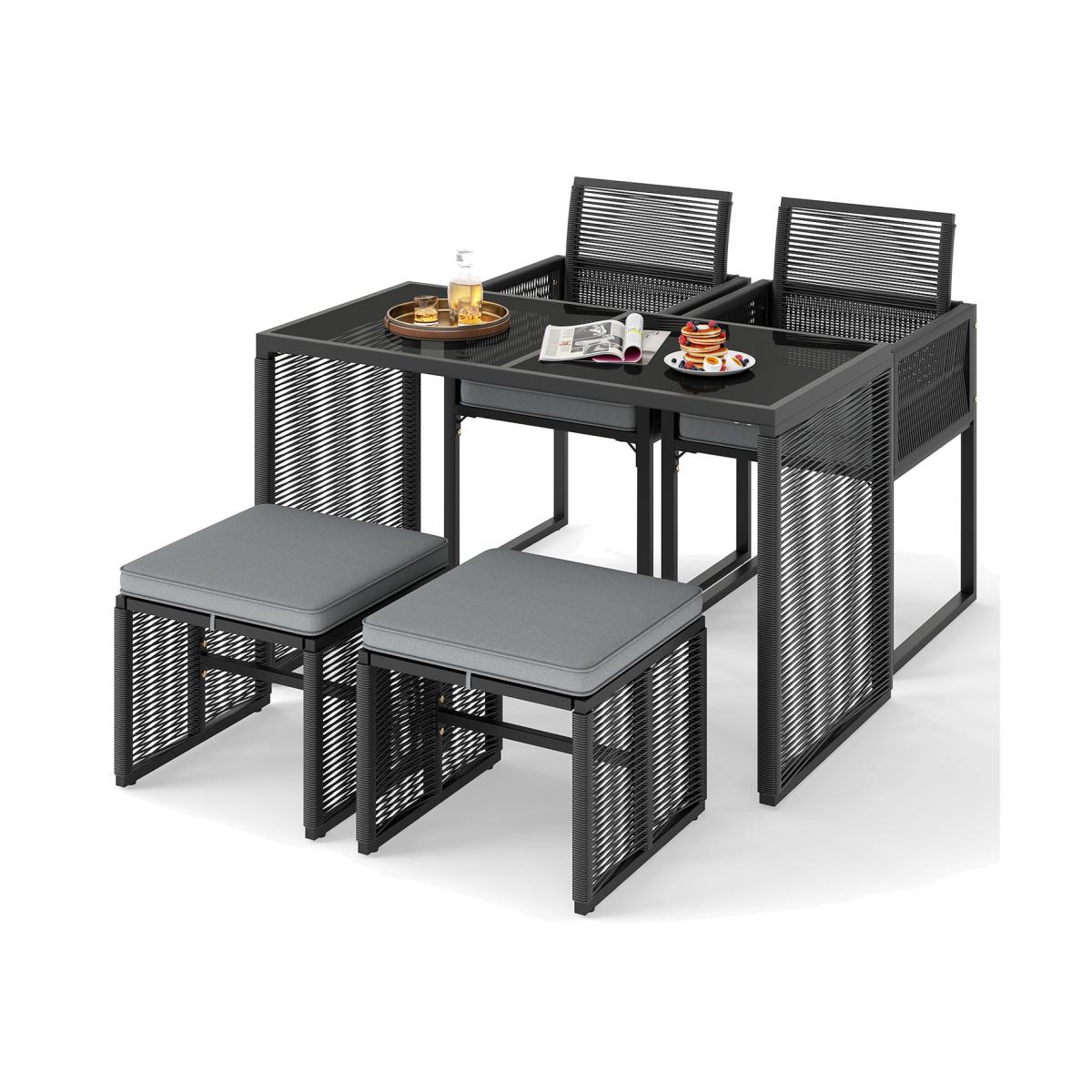 5 Pieces Space-Saving Patio Dining Set - Black