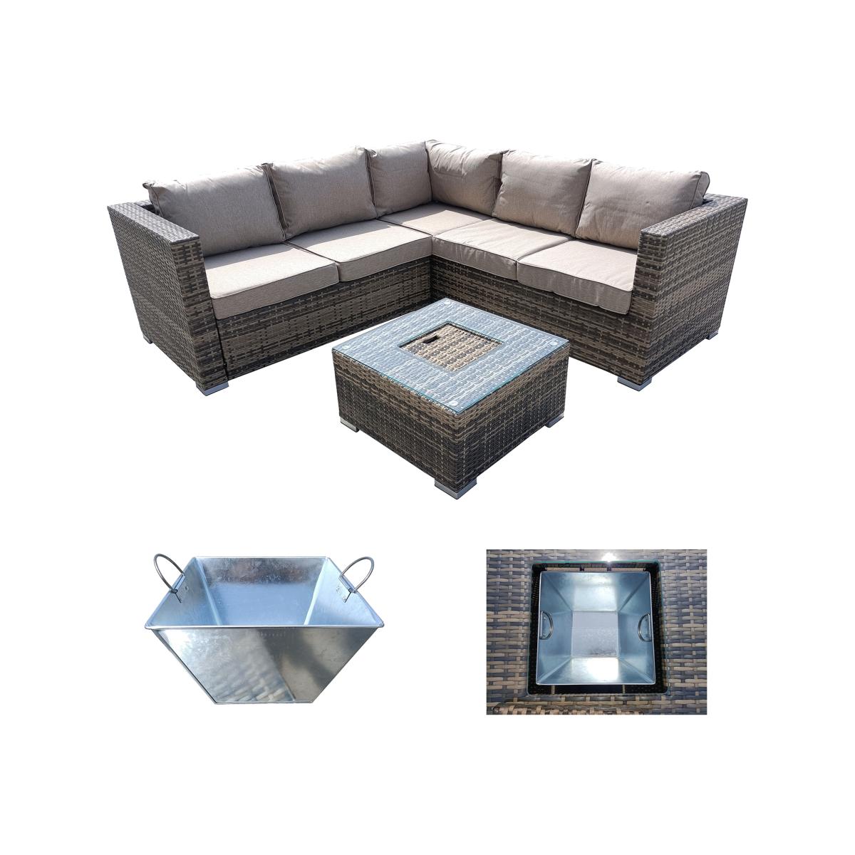 The FURNITURE ONE 5 Seat Rattan Corner Sofa With Ice Bucket contains a coffee table, and ice bucket. With modern technological advancements, rattan is now made from recycled materials, known as PU Rattan. The main reason the garden corner sofa set uses PU rattan is because of the weather-resistant properties it has. PU rattan is weatherproof and is can be left outside all year round. Comfort I think it is safe to assume that our friends and families are what fill our life with fulfillment. Would you be OK with them coming over to sit on a cheaper outdoor corner sofa, or nowhere to sit Elegance and beauty matched with deep-filled cushions make for the perfect loving environment. The rattan corner sofa with a coffee table allows for pure relaxation. Hosting When you have visitors over, you want to be able to accommodate everyone. If you have a smaller living space, you may be unable to host all of them in one room. Although the weather in the UK doesn't always permit for the garden corner sofa, it could be an invaluable addition to your ability to seat everyone.