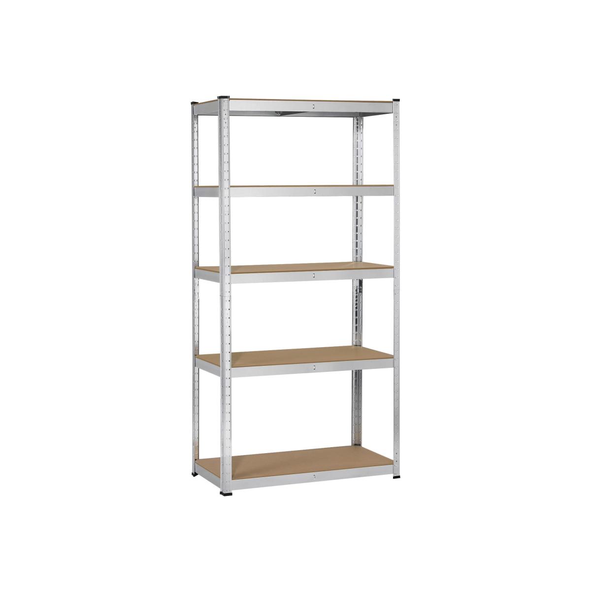 This high-quality storage shelf is constructed of a galvanized metal plate. The solid structure can hold up to 175 kg loads per tier. This 5-tier shelving unit can be used separately or combined with other shelves into a larger storage space to meet your various needs. Also, the adjustable shelves level at every 4 cm to fit a variety of items. Its boltless design allows it to be easily assembled and disassembled. This storage rack can be disassembled into a compact size for easy storing and transporting. It is an ideal storing and displaying solution in the kitchen, garage, and balcony.