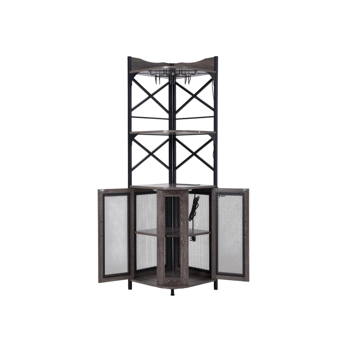 Elevate your home bar setup with this industrial-style bar cabinet. Built with generous capacity, it includes wine racks, hanging glass holders and a storage cupboard to accommodate all your drink essentials. The lower cabinet with mesh doors keeps your whisky and wine collection protected and neatly organised. Vibrant RGB LED lighting offers adjustable colours, speeds, brightness levels and flashing modes, allowing you to create a personalised atmosphere. With the music-sync function, the lights respond to sound and music for an immersive effect. A built-in charging station provides convenient power for your electronic devices, while the timer function adds extra ease of use and helps save energy