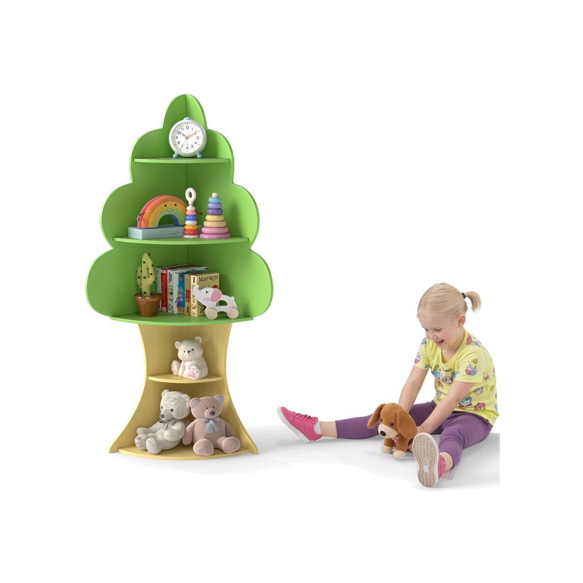 Keep kid's books neatly organized with our tree bookshelf! The 5-tier tree display rack offers ample storage space for books, toys, ornaments, and more. The adorable tree shape and beautiful color make it an attractive addition to kid's rooms, nurseries, kindergartens, etc. Additionally, with corner design, it won't take up too much floor space. The solid base and anti-toppling system keep the toy storage organizer steady and stable. Thick panels ensure long-term use.