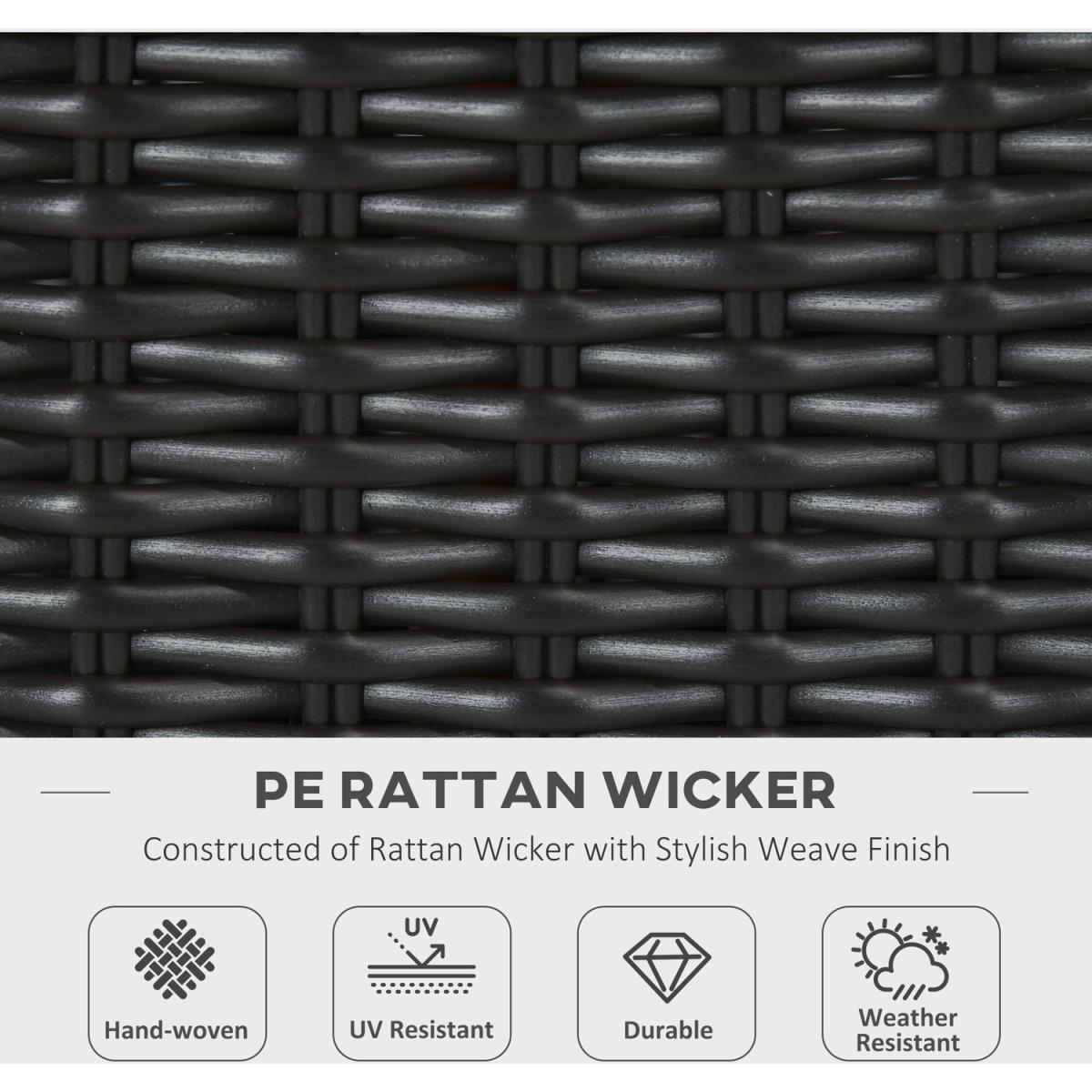 Enjoy garden warmth and ambiance all year-round with this Outsunny fire pit table. Rattan design is stylish, looks great matched with other furniture. The tabletop is fitted with a centre fire pit - the 50,000 BTU burner is powerful and produces a clean smokeless burn. The flame can be adjusted too. The thermocouple closes the valve if the flame goes out for safety - no leaking gas. Complete with a glass guard, protecting against flying sparks.