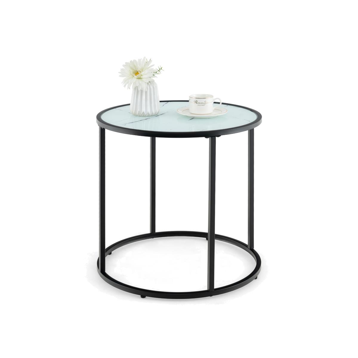 A perfect piece to brighten your home! The coffee accent table boasts a durable metal frame that provides stability and support. More, tempered glass is much stronger than regular glass, making it resistant to impact, heat and scratch. The faux marble top adds a touch of luxury and elegance, making it a stylish addition to your living room, bedroom, balcony, or any small space.