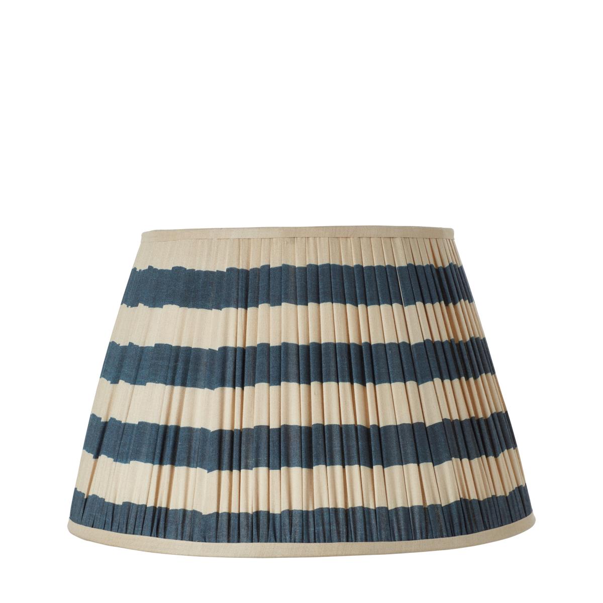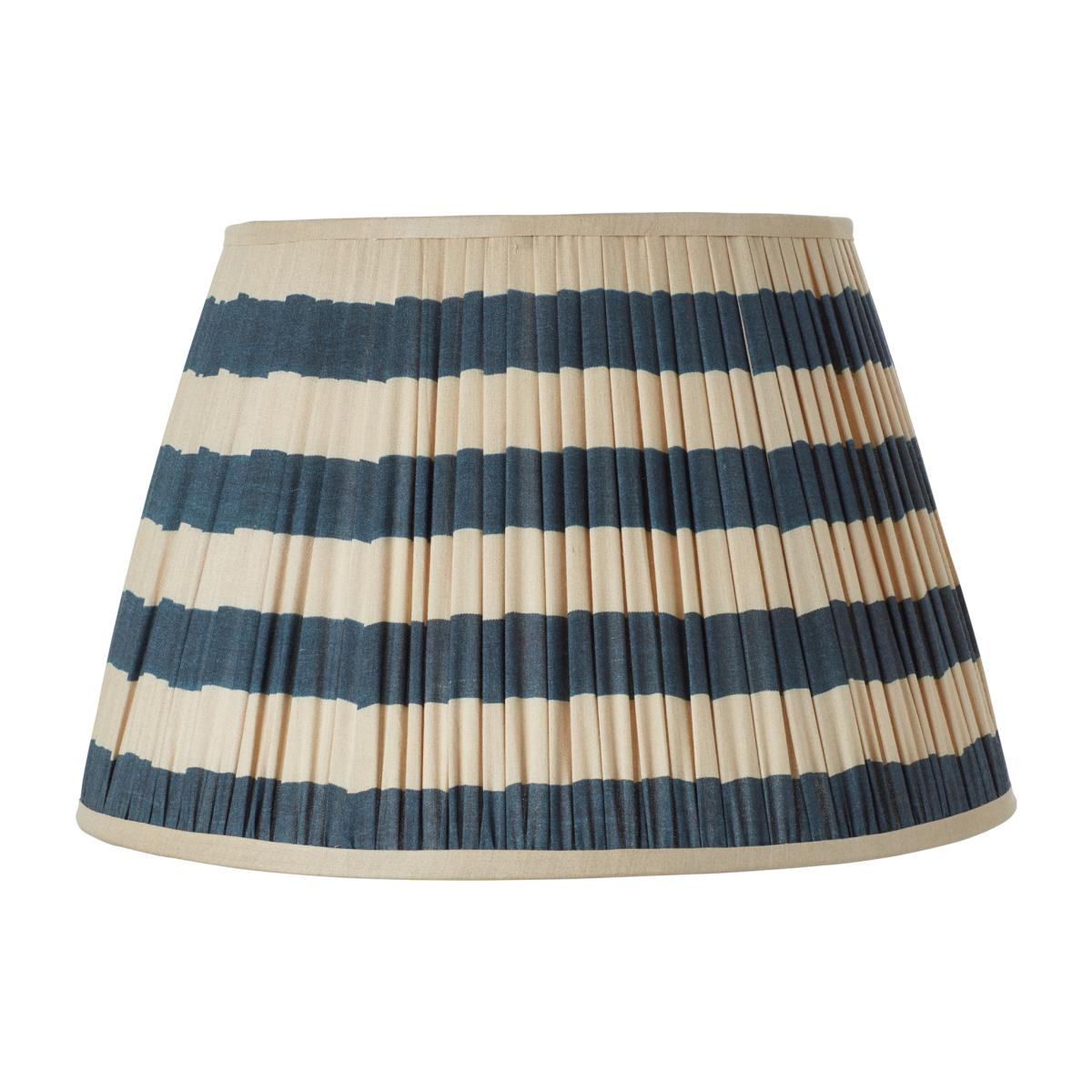 Never shy of colour, OKA's three Founders created this range of finely crafted silk pleated lampshades, decorated with horizontal stripes in either blue, lime, purple or red. The Warna Lampshades offer a lively touch to a lamp base, and match the tussah silk cushions featured in Sue Jones' Turkish-inspired Chitiki Collection. 50cm Warna Silk Pleated Lampshade - Dark Blue