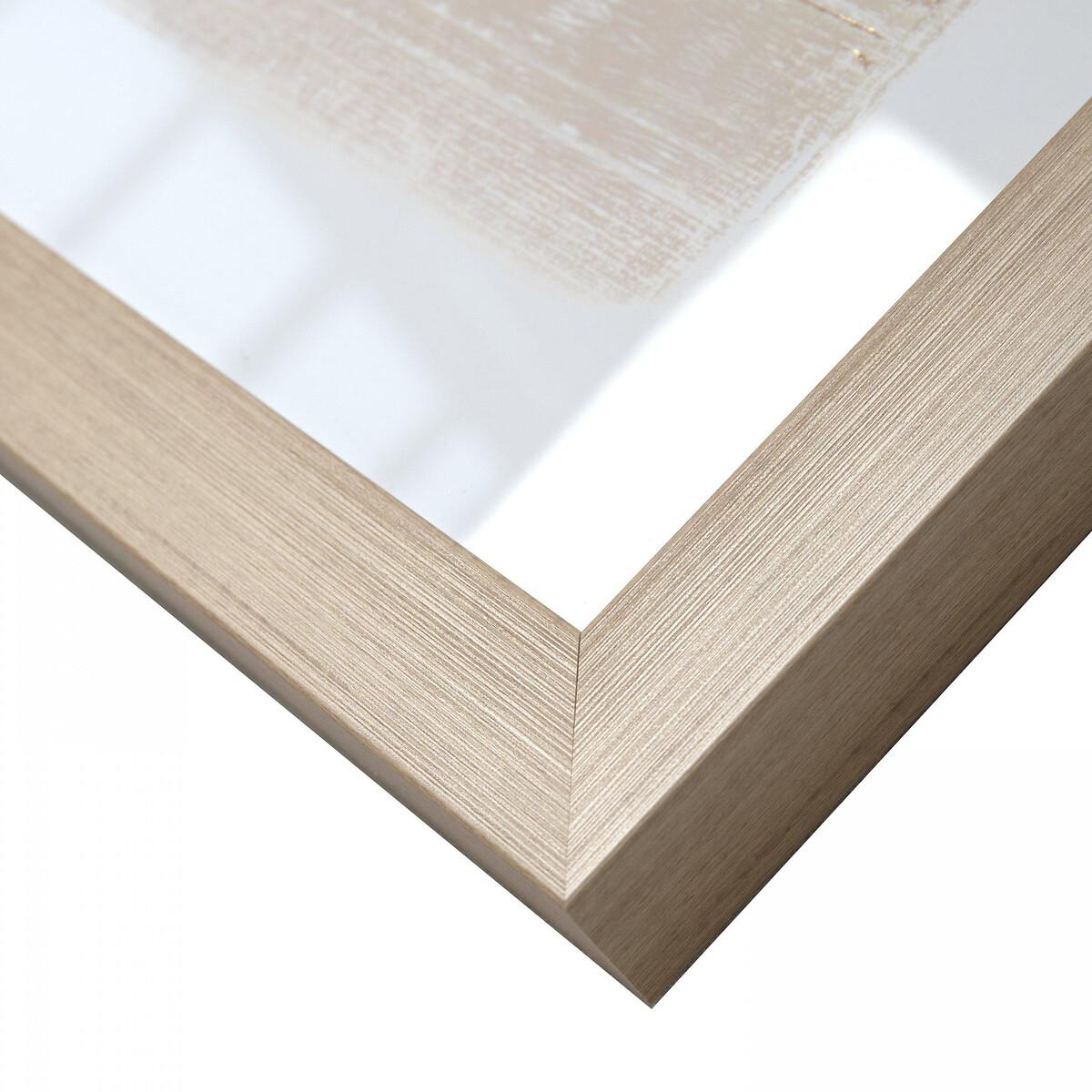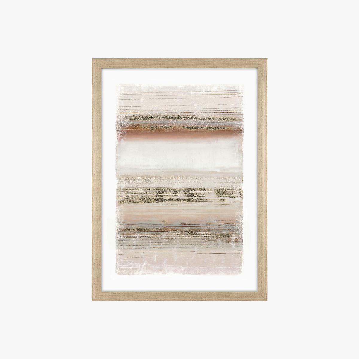 A journey of exploration into abstract language through shapes, texture and lines. Anna Medvedeva collates a warm selection of paints and thoughtfully articulates her expression through various horizontal brush strokes, paying attention to the texture and spacing to create a serene effect. Metallic gold foil embellishments across the design establish depth. The contemporary wall art is glazed and presented within an oak wood effect frame. This product will be dispatched by one of our trusted suppliers. You’ll be contacted by their selected courier about your delivery. GALLE01
