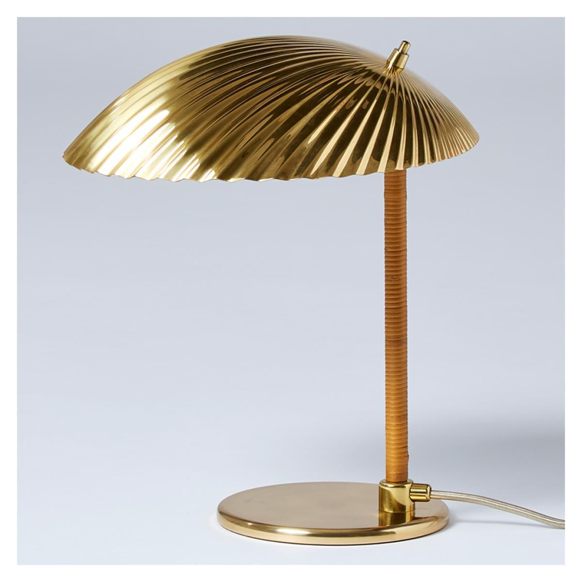 An iconic design originally conceptualised in 1938 by Finnish designer Paavo Tynell, the 5321 Table Lamp is expertly crafted by Gubi. Lending a touch of romance and playfulness to traditional mid-century design, the brass seashell-shaped lampshade and the illuminated bulb evoke images of pearls resting in the deep sea. Decorative and functional, the 5321 Table Lamp is accompanied by a brass base, rattan-covered stem and brass-hued textile cord cable for a truly luxurious finish. Renowned for his influence on modern lighting design, Paavo Tynell originally trained as a blacksmith before founding his own metalwork and lighting studio in 1918. With a simplified aesthetic, his pieces echo influences from mid-century modernism, showcasing counterweighted suspension mechanisms and beautiful complementary materials in appealing forms. Requires: 1 x Max 30W E27 bulb (not included)