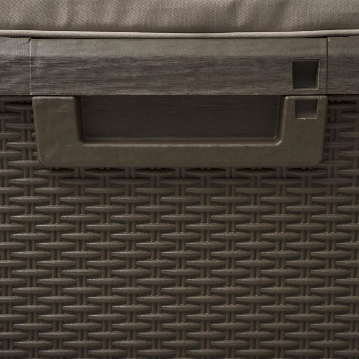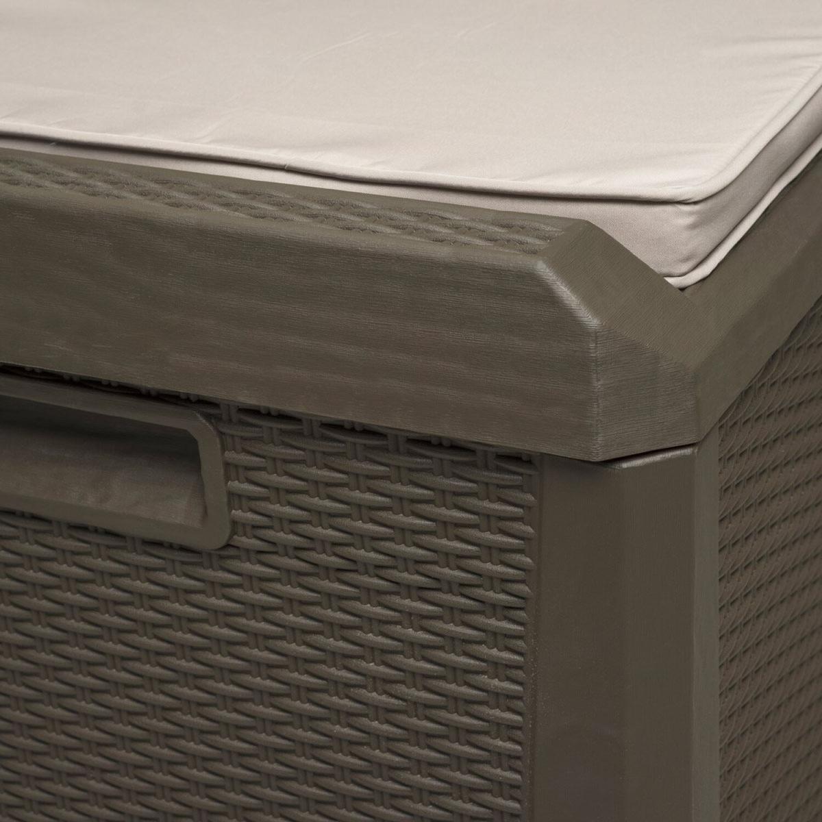 550L Plastic Outdoor Garden Storage Rattan Effect with Cushion - Brown