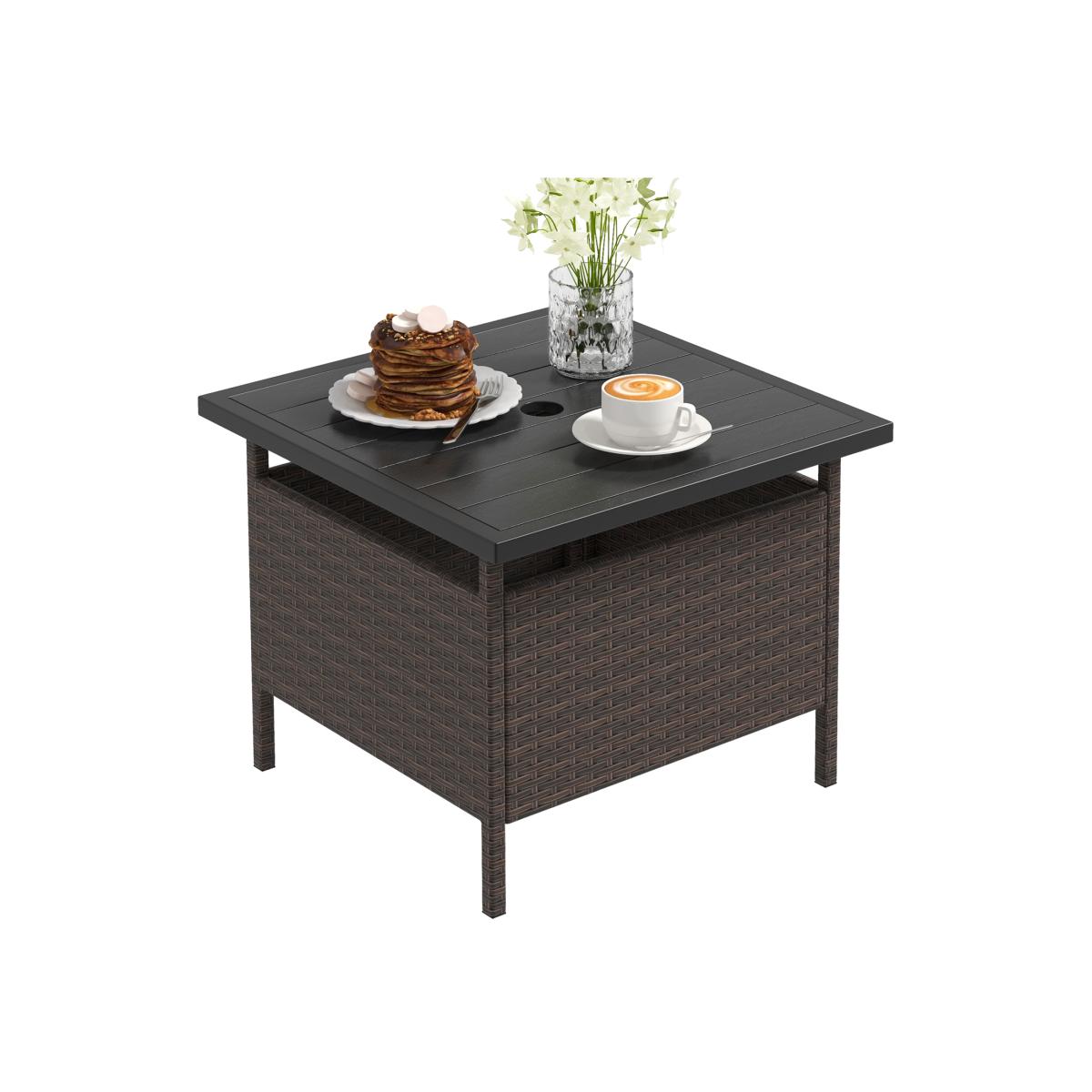 Sit down for a cup of coffee or a pleasant meal and enjoy your relaxing time. This outdoor wicker side table will be an ideal choice to make your everyday outdoor spaces stunning. Smooth tabletop and PE rattan wrapped metal frame ensure excellent durability. Its compact structure and charming appearance can blend well with your home decor. 55CM Square End Table Garden Patio Wicker Side Table - Brown