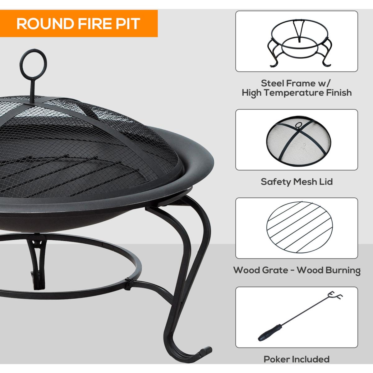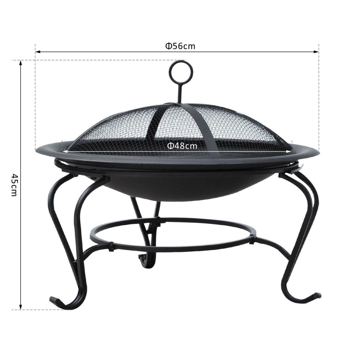 56 cm Diameter Round Outdoor Metal Fire Pit Wood Burning Heater - Black