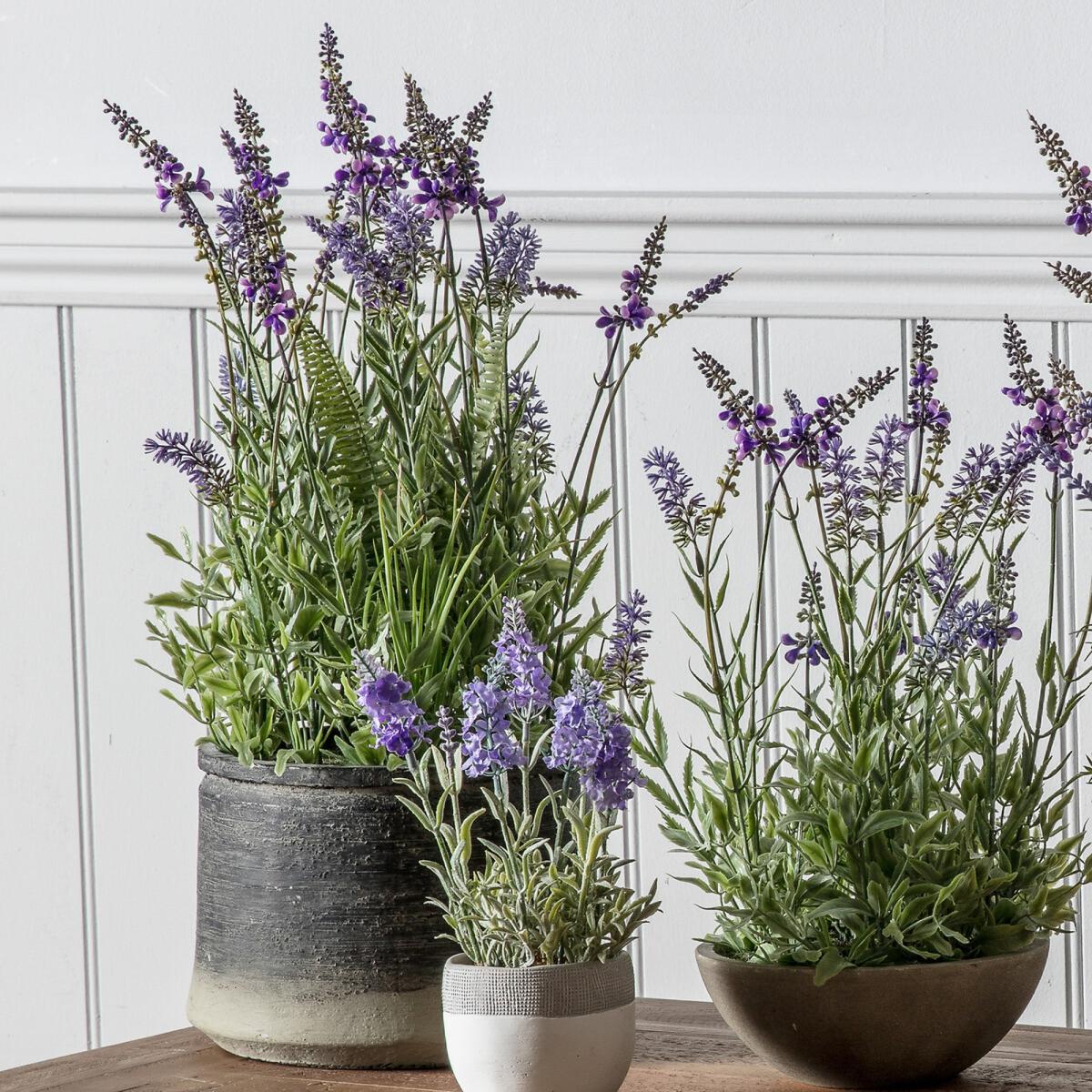 I love this pair of lavender in pots because they bring a fresh, natural feel without the maintenance of real plants. It works especially well in kitchens, bathrooms, or living areas where a splash of colour and texture is desired. These would be particularly effective in rustic or shabby-chic interiors, where their organic form complements a relaxed aesthetic. For styling, place them on shelves or window sills for vertical interest, or group with other faux herbs or greenery to create a curated, layered look. To keep things looking realistic, arrange the flowers at varying heights and angles, and pair with textured planters in neutral tones to enhance their natural charm.