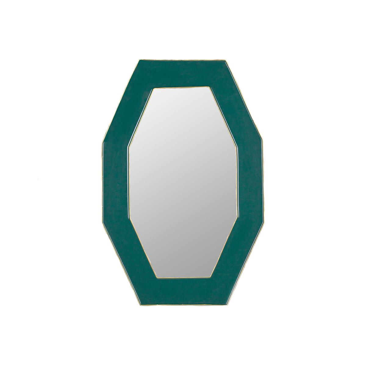 A slim, art deco inspired octagonal mirror, which is surrounded by a teal enamel frame, with a luxe brass finish to provide a modern touch to any home. Product Dimensions: 59cmx39cmx2cm. This product will be dispatched by one of our trusted suppliers. You’ll be contacted by their selected courier about your delivery.