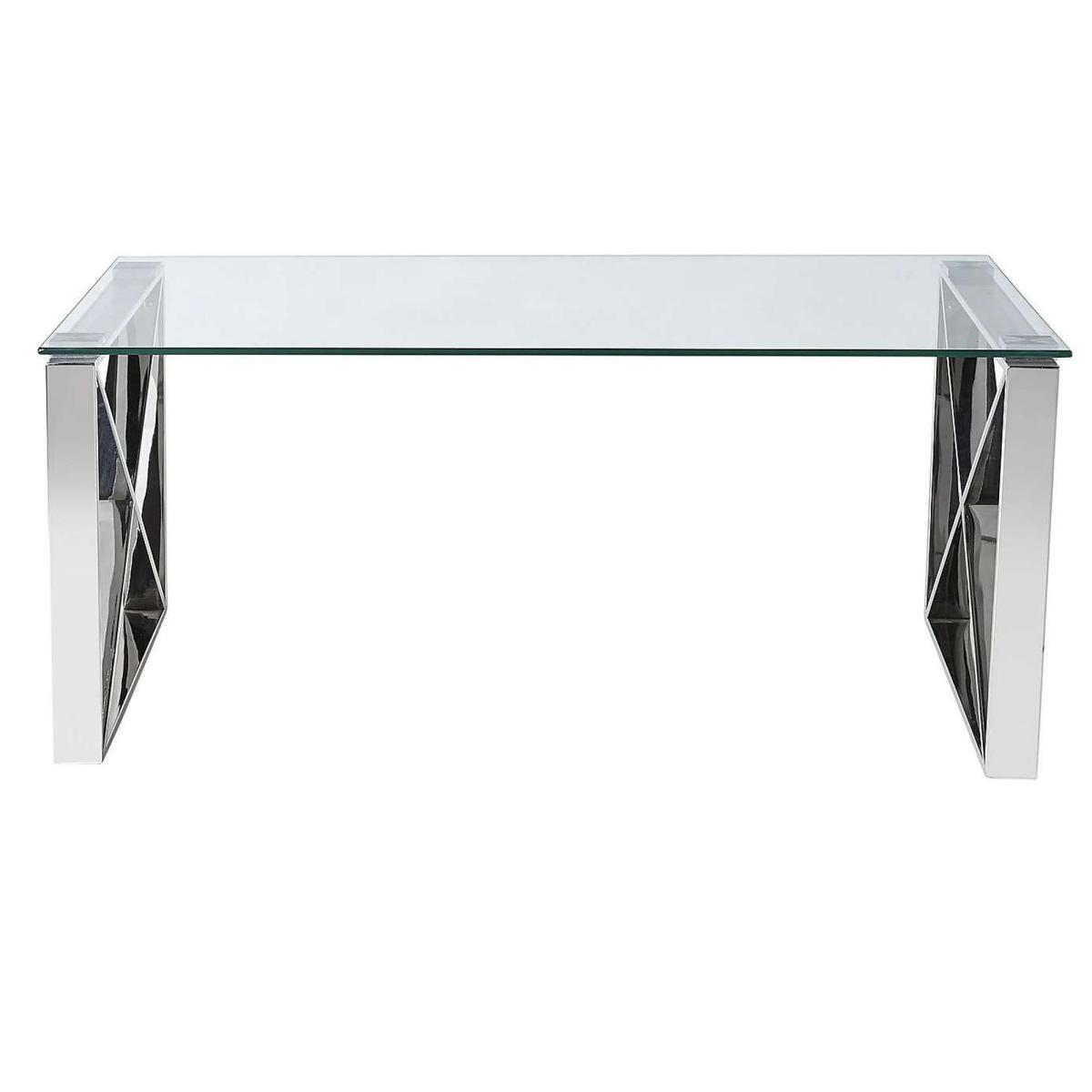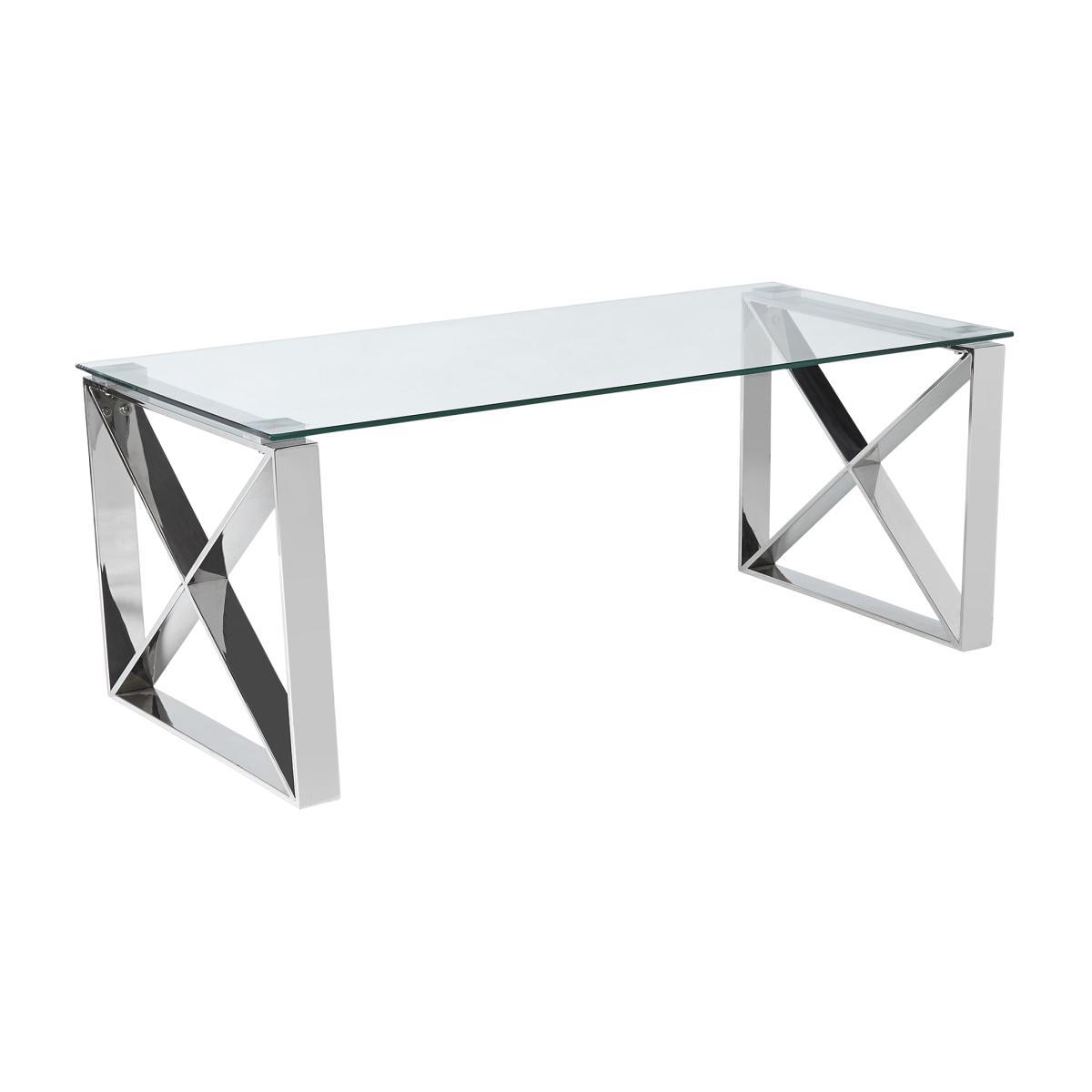 Inspired by the Art Deco period, the Madison range will add a touch of class and opulence to any home. Featuring a mirrored polished frame, this part-assembly coffee table features clean lines with its floating, tempered crystal glass top, with softened polished corners. Part of the luxurious Fifth Avenue range, this coffee table features a striking cross frame design, crafted from durable stainless steel.