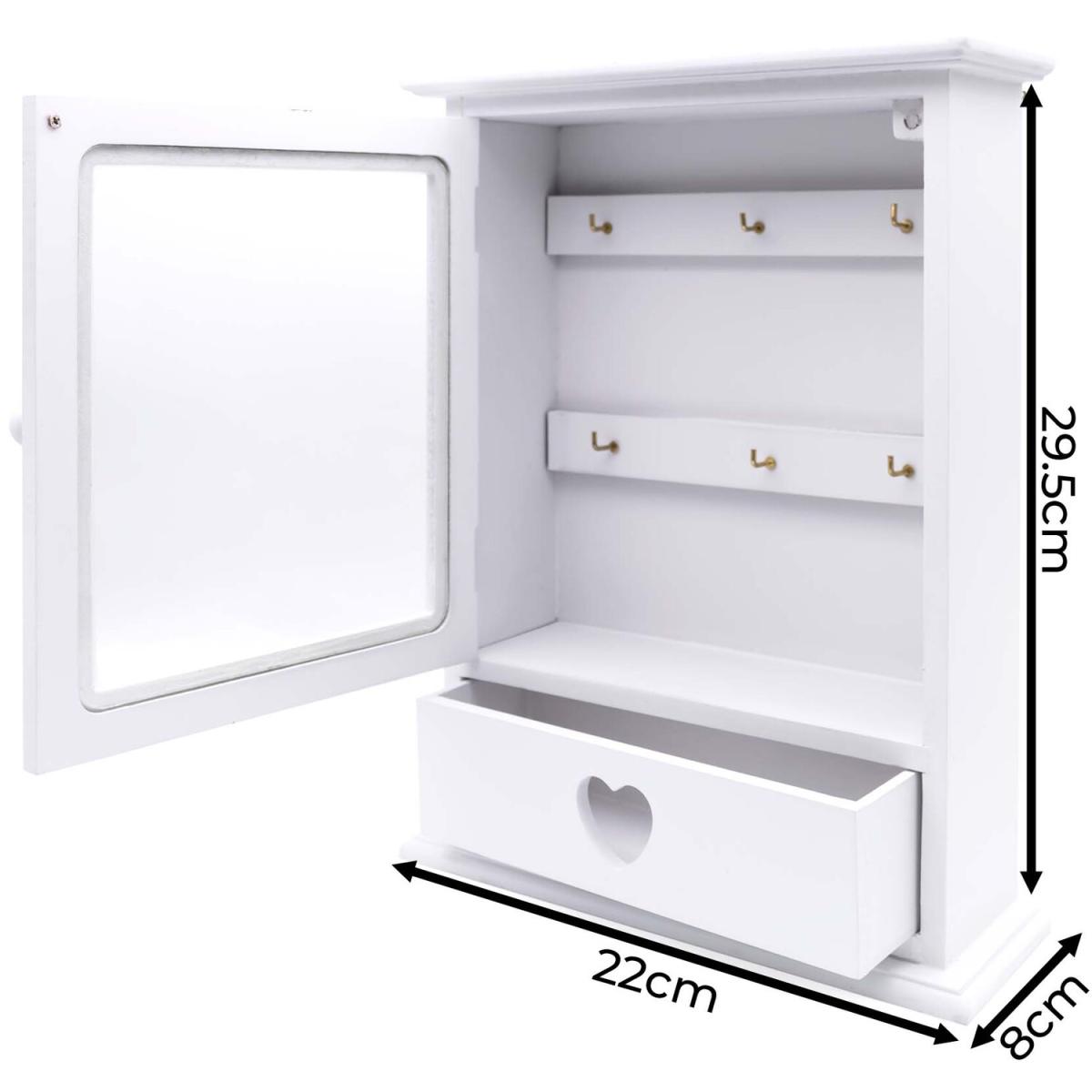 6 Key Hook Holder Cabinet, White Glass Window Key Storage Box with Drawer - White