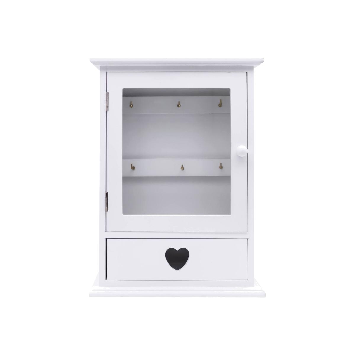 I love this little key holder cabinet for its blend of practicality and charm. Its clean white finish and glass panel make it versatile enough to suit both modern or cottage-style interiors, especially in hallways or kitchens where a touch of organisation is essential. Perfect for adding a decorative element, the heart detail on the drawer adds a subtle touch of character. When styling, consider pairing it with matching white or pastel accessories to keep the look light and airy, or use it as a quirky focal point by contrasting with darker or more textured surroundings. The glass window and hooks make it easy to see and access keys at a glance, while the drawer offers hidden storage for small essentials, making it as functional as it is aesthetically pleasing.
