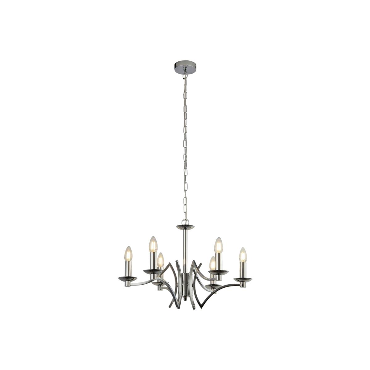 For a touch of style in any modern kitchen or hallway, the chome ASCOT chandelier sits well with clean, modern dcor or provides a contrast to more contemporary, industrial decoration. Finished with a matching, adjustable chain for hanging at the perfect height for your home, the 6 bulbs can work with a dimmer switch to create the perfect ambience for any occasion