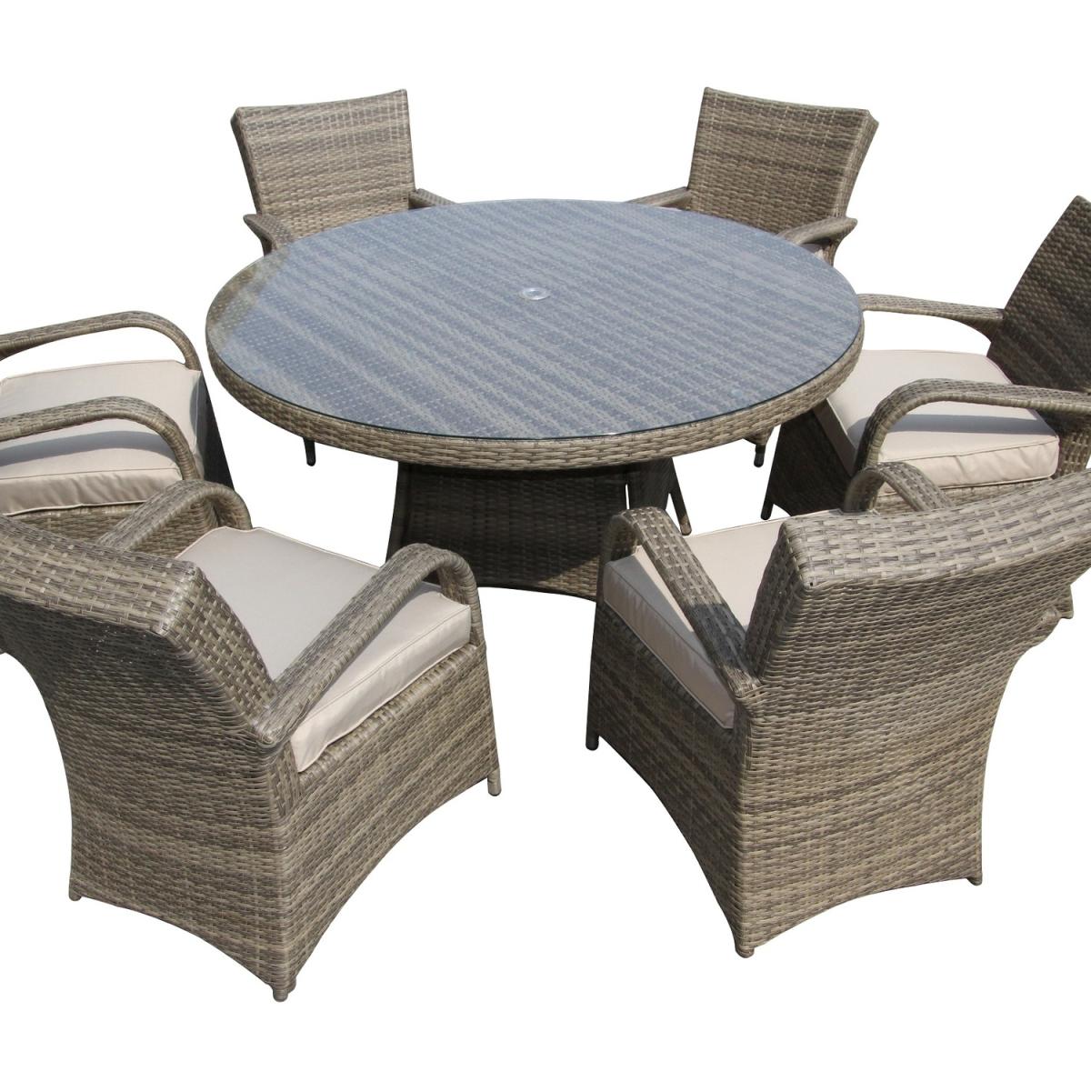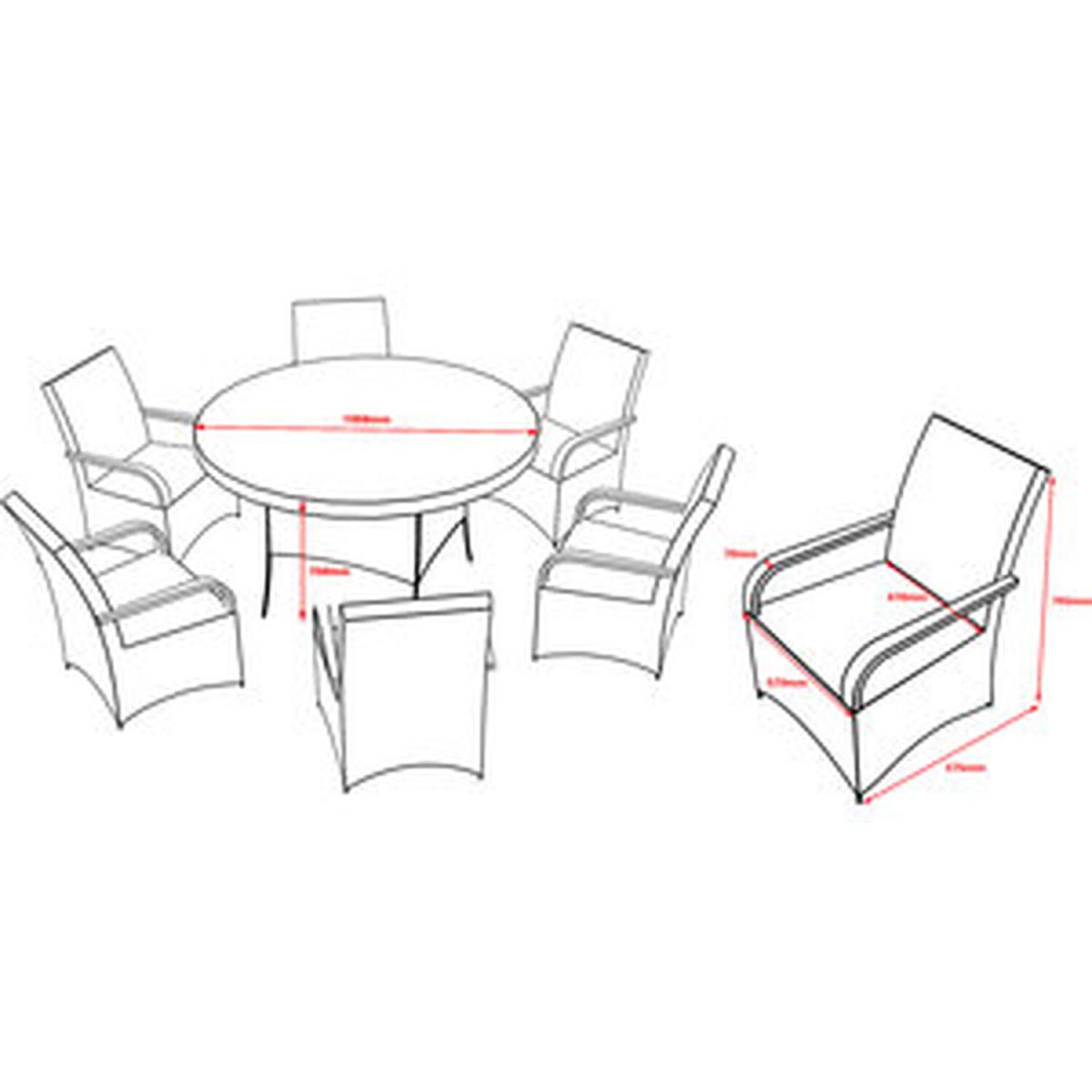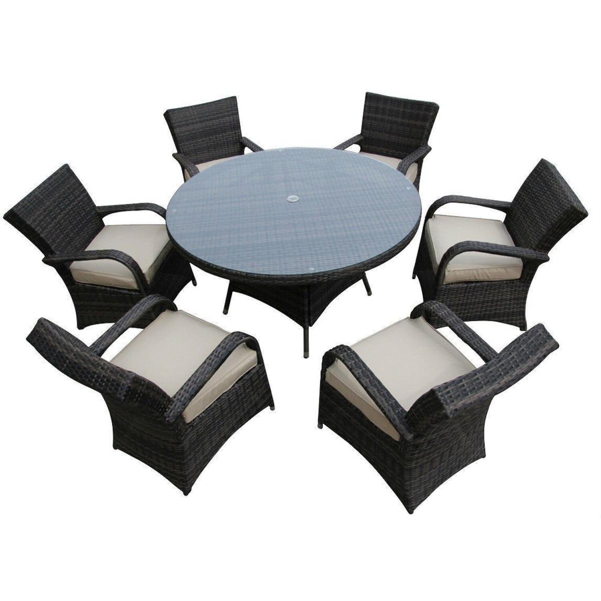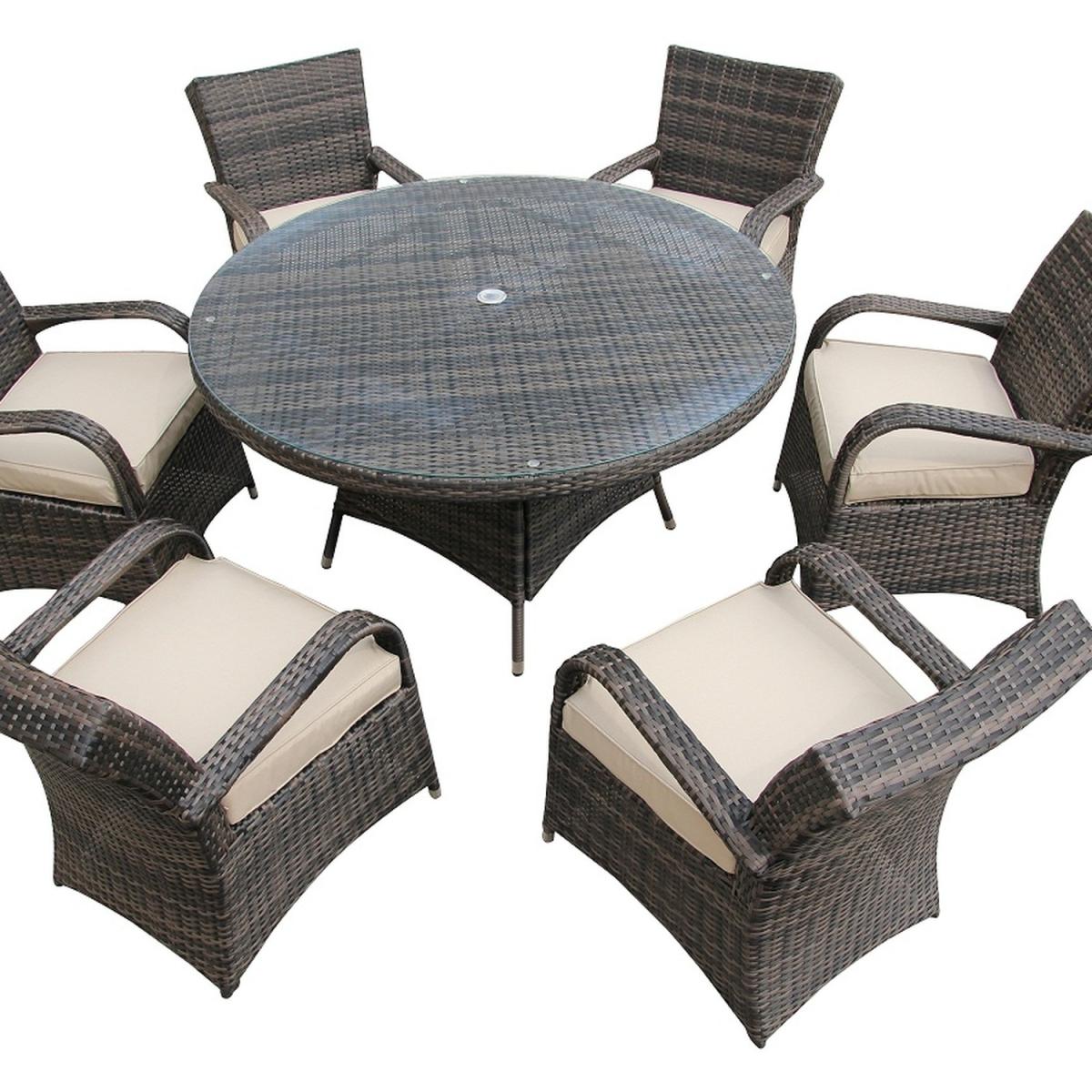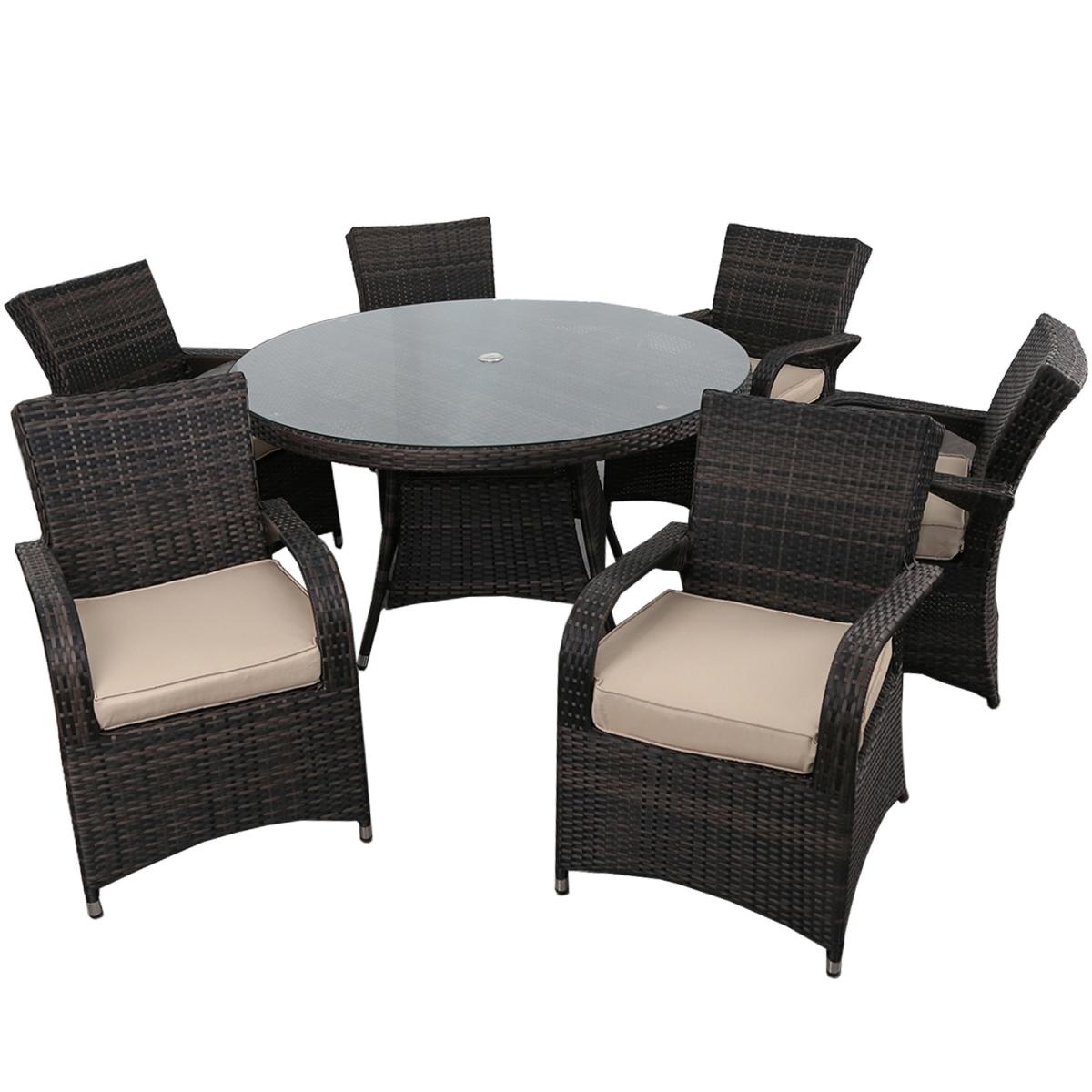 6 Person Rattan Dining Garden Set with Cushion - Nature / 6x chairs, 1x Round table