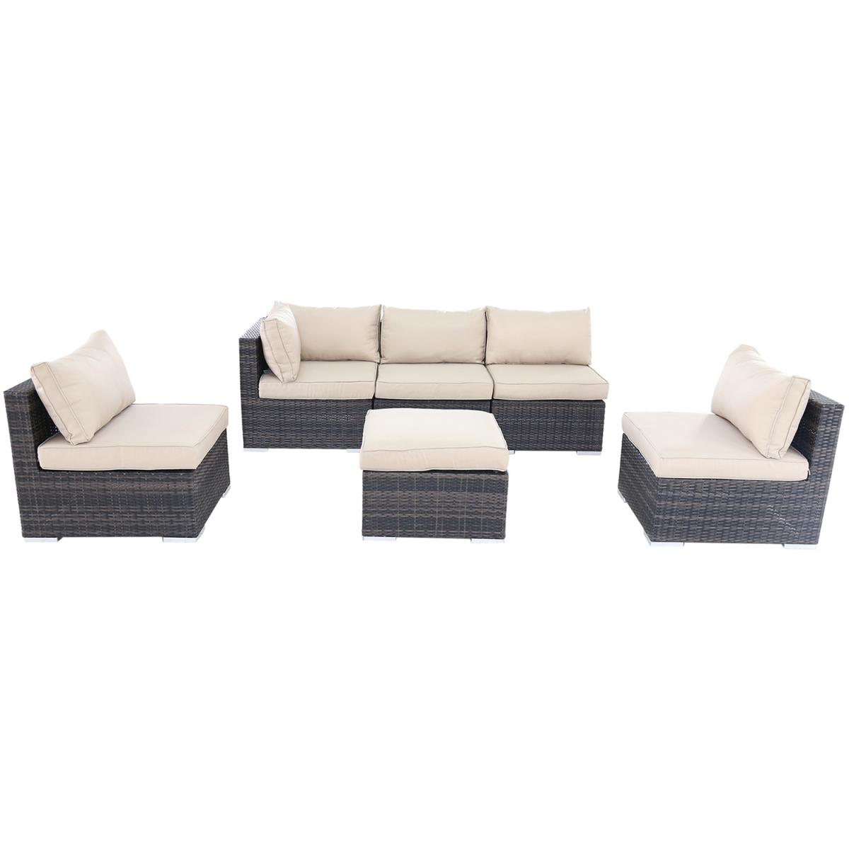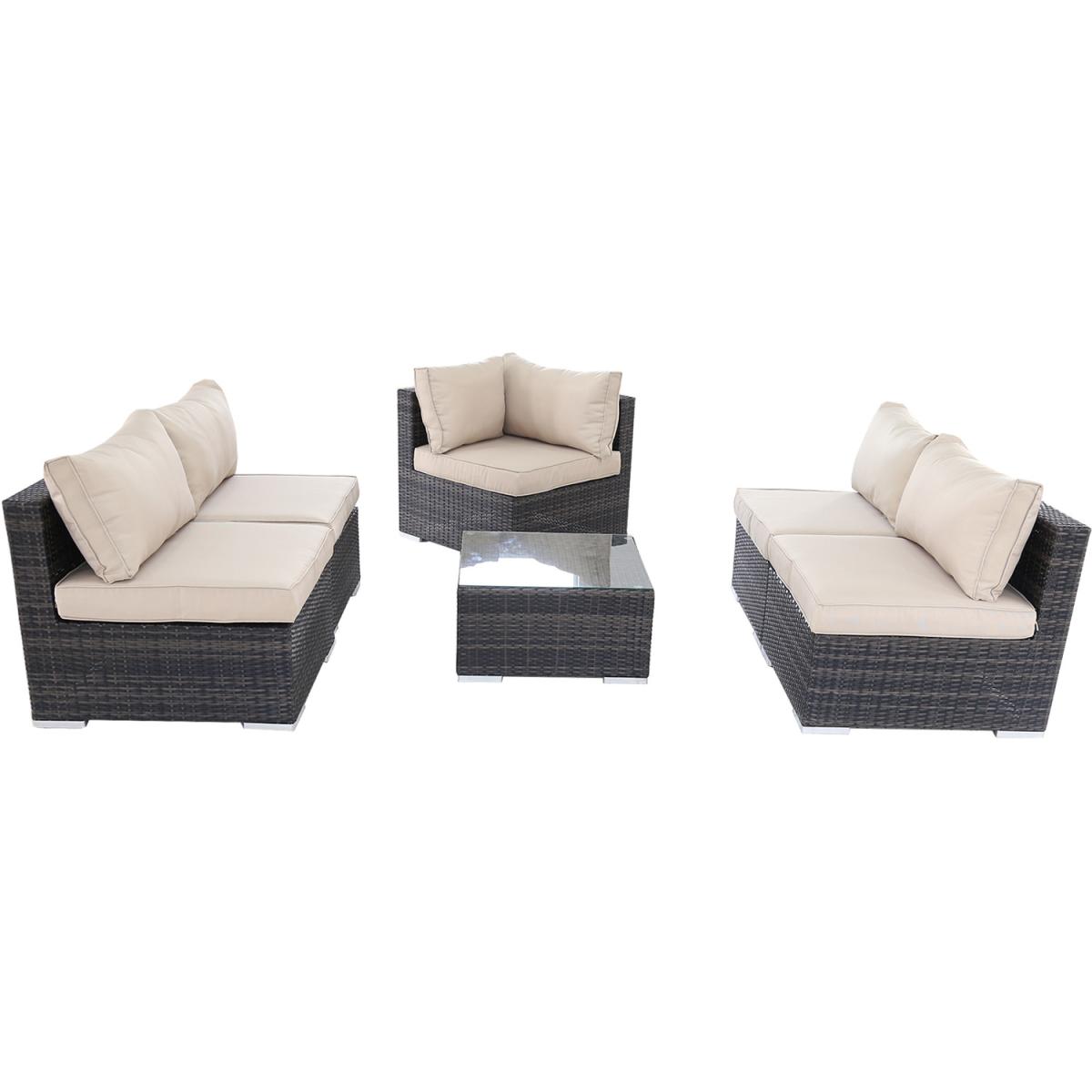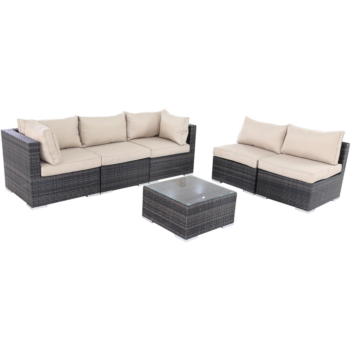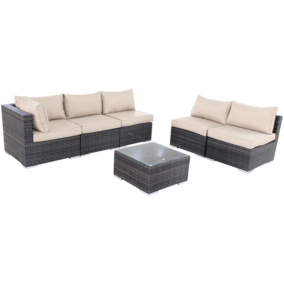 6 Piece Garden Furniture Corner Sofa Set - Mix Brown