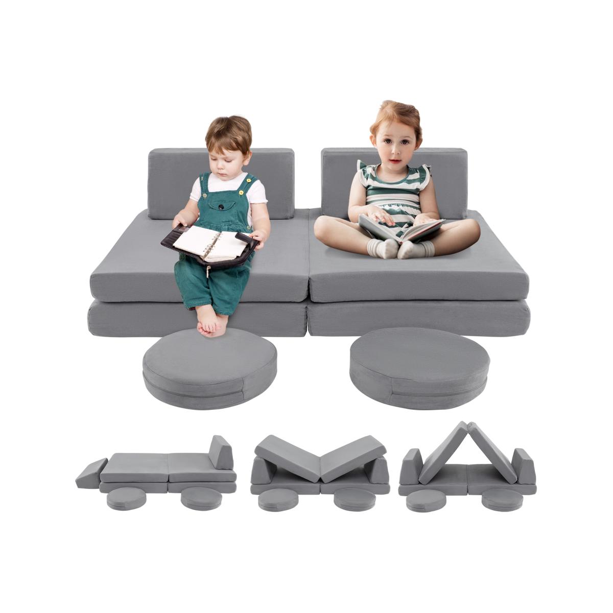 Encourage endless creativity and play with this convertible kids' foam sofa set. This set includes soft velvet covers and high-density foam padding, offering comfort and protection for active play or relaxation. It is easy to clean with machine-washable covers. A perfect gift for creative children, this modular play couch set fosters imaginative play, motor skills, and hand-eye coordination. Treat your little ones to a versatile and fun play experience with this delightful and functional kids' play couch set.