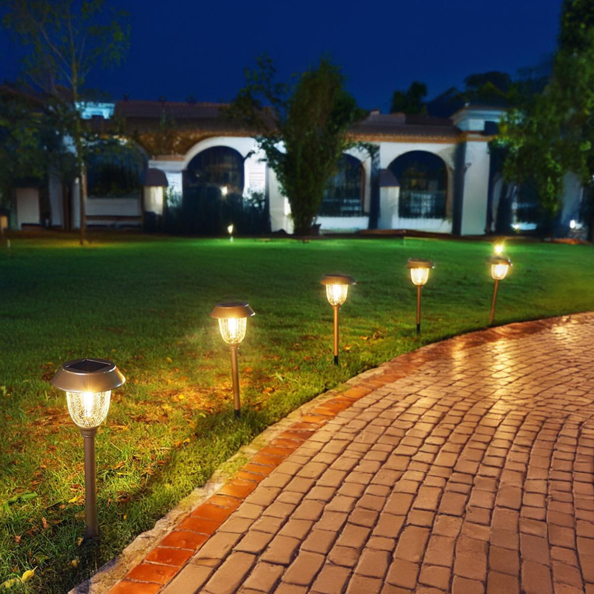 Light up your lawn with these elegant Garden Sanctuary path lights to bring warmth and joy at sunset. Made of metallic copper, the lights blend beautifully with your outdoor surroundings and enhance the sophistication of your backyard. Made of glass and stainless steel, these lights can withstand all weather conditions. They are solar-powered, making them effortless to use, with no wiring or batteries required, making it easy to create a warm and inviting atmosphere in your garden. 6 Piece Outdoor Solar Decorative Street Lights - Brown