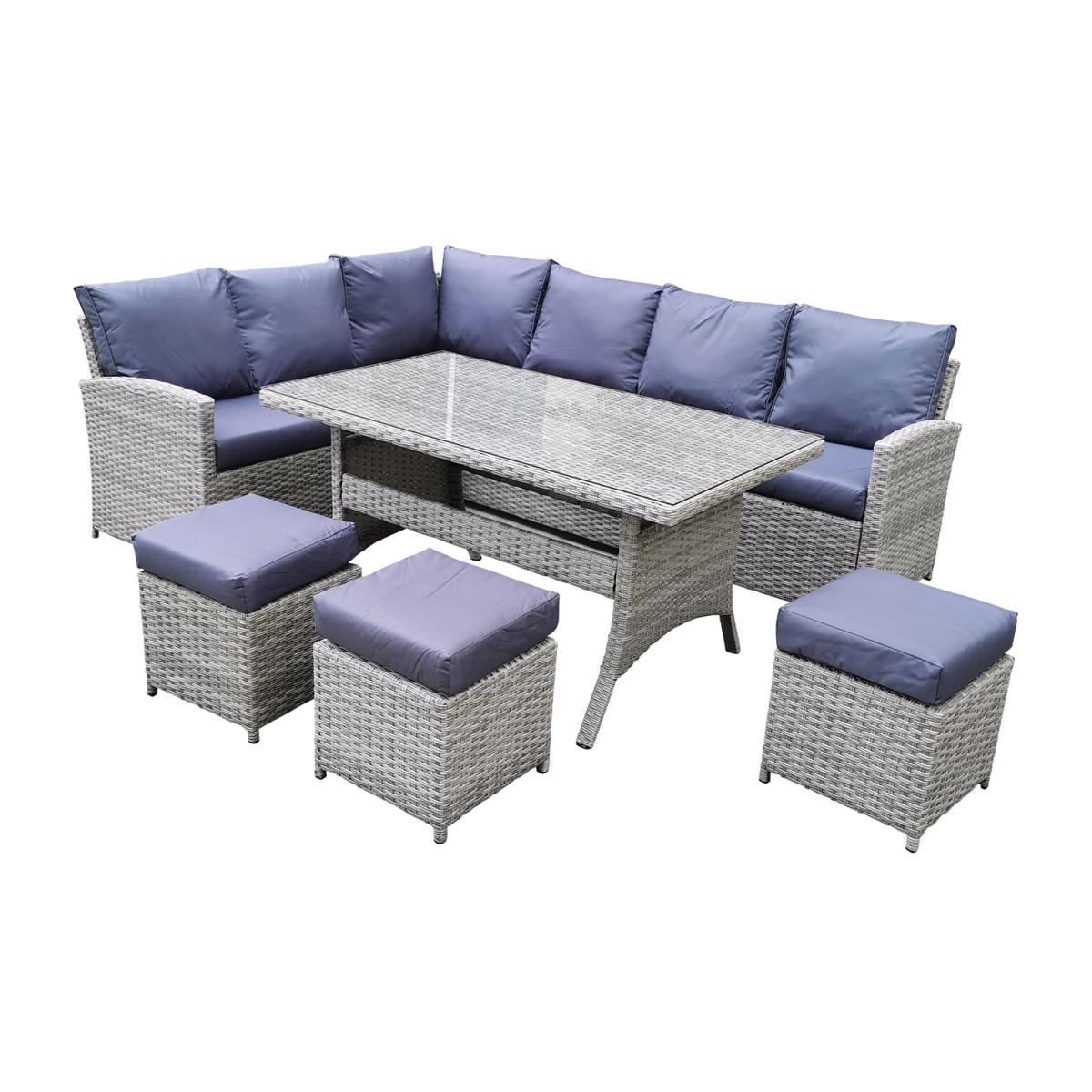 Providing lots of space for you and your family or friends to spread out and enjoy summer days, the 6 Piece Santa Rosa Corner Dining Set is large patio furniture set with an open design and lovely colourway. The synthetic rattan wrapped around each piece, which provides weather resistance, is coloured a lovely pale grey, which contrasts beautifully with the unique slate grey of the plush cushions and seat pads. The dining table is topped with tempered glass, adding strength as well as a sophisticated finish. The Santa Rosa comes with an outdoor table, three stools, and a corner unit made up of two sofas. Able to seat up to ten people, this set is perfect for people who really try to make the most of their garden during the summer months. Whether you love enjoying the sun as your kids race around in your garden, or invite your frineds 'round for barbecues, this set will surely be perfect for you.