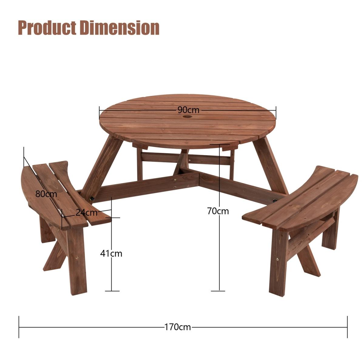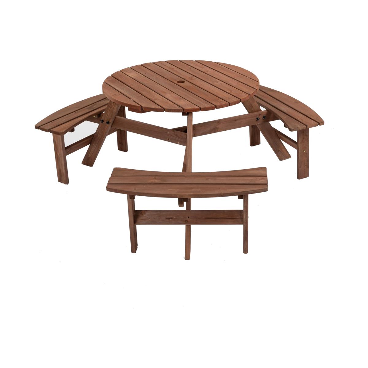 6 Seat Round Picnic Table - Brown