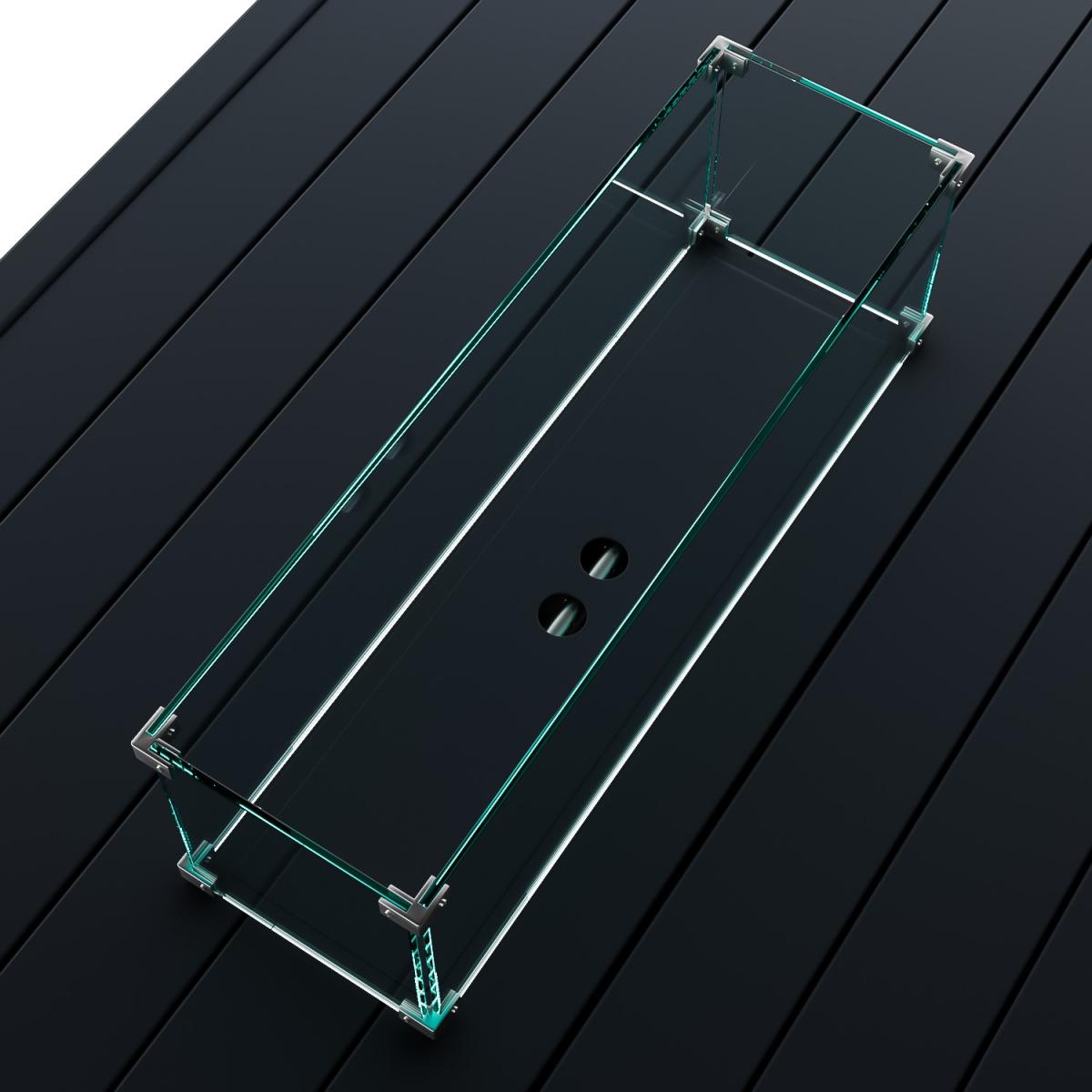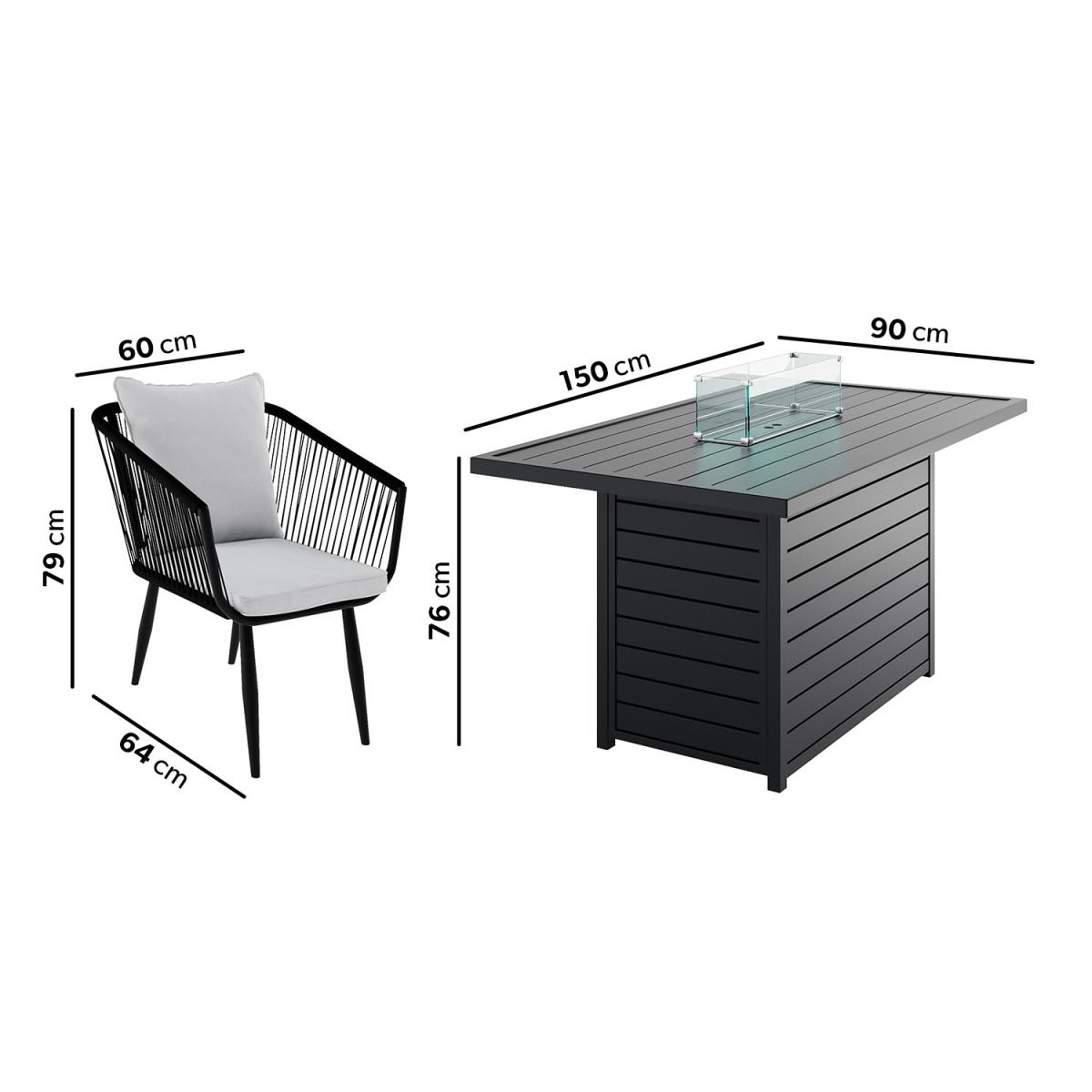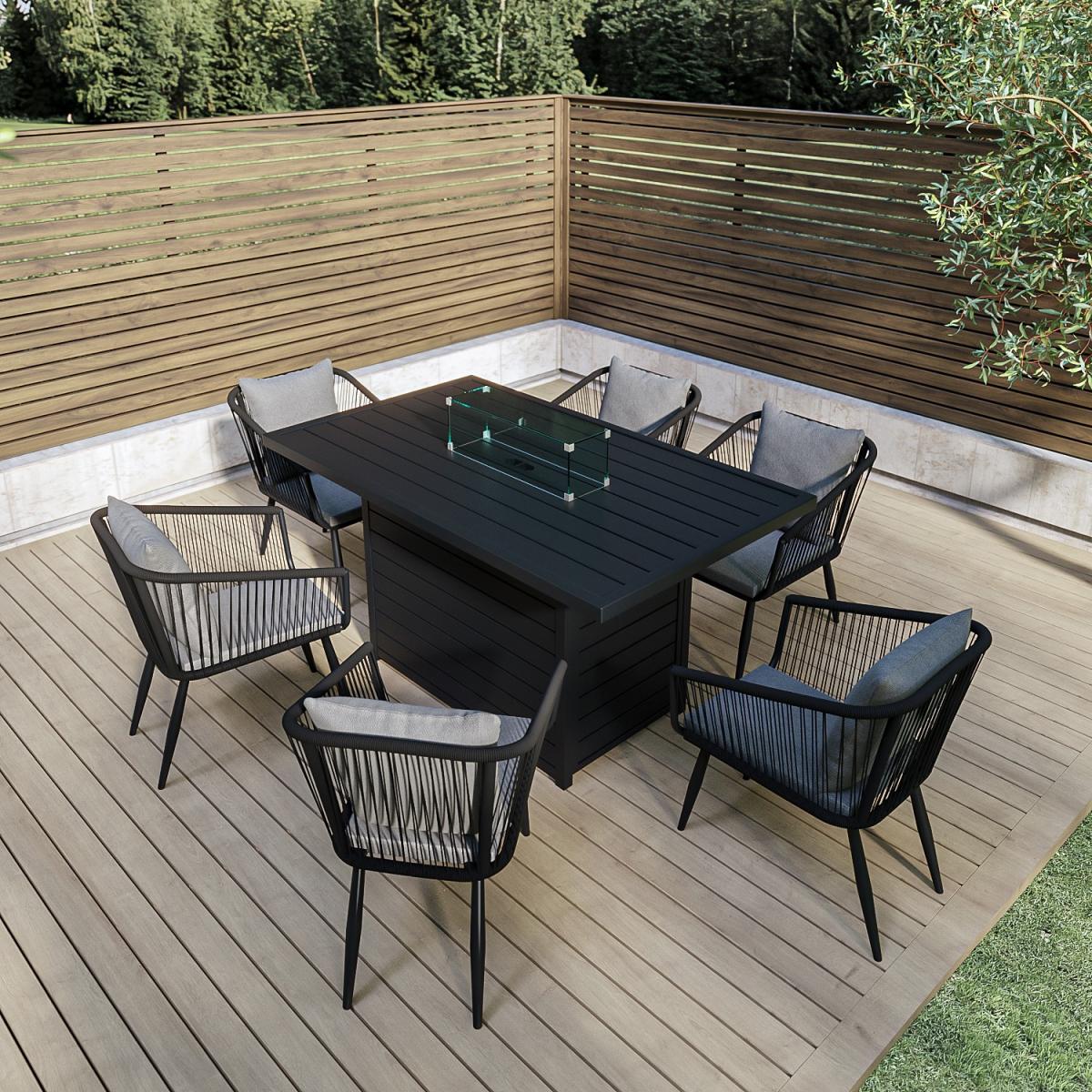Enjoy outdoor entertaining with friends and family with this contemporary garden set. Dine by day, then convert the table to a fire pit and settle into the evening, whatever the temperature. A control panel allows you to adjust the heat, plus the flames are protected from wind and for safety by a glass surround. Made from aluminium and entwined rope woven and wrapped over frames to create the chair backs and armrests, give this set a designer look. Enhance the life of your garden furniture- This product has been designed to be used outdoors. To make the most of your furniture, we recommend that you store it indoors, move it in a sheltered position or protect it by covering it up* in bad weather and over the winter period. Why not invest in one of our garden stores? They keep upholstery, such as cushions, dry to prevent mould or mildew from forming. *Did you know we now have our own range of garden covers in 4 different sizes?