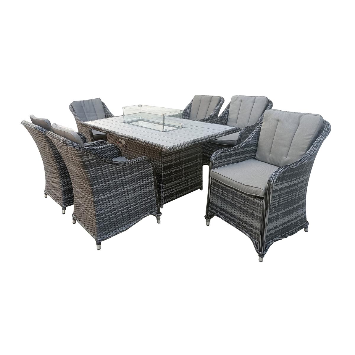 6 Seater Rattan Fire Pit Garden Furniture - Grey / 1 Rectangular Fire Pit Table 6 Armchair