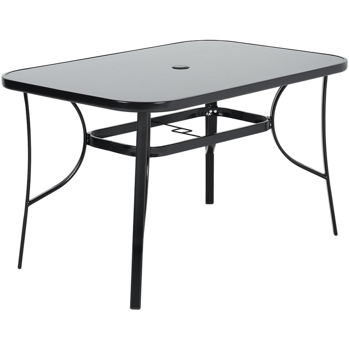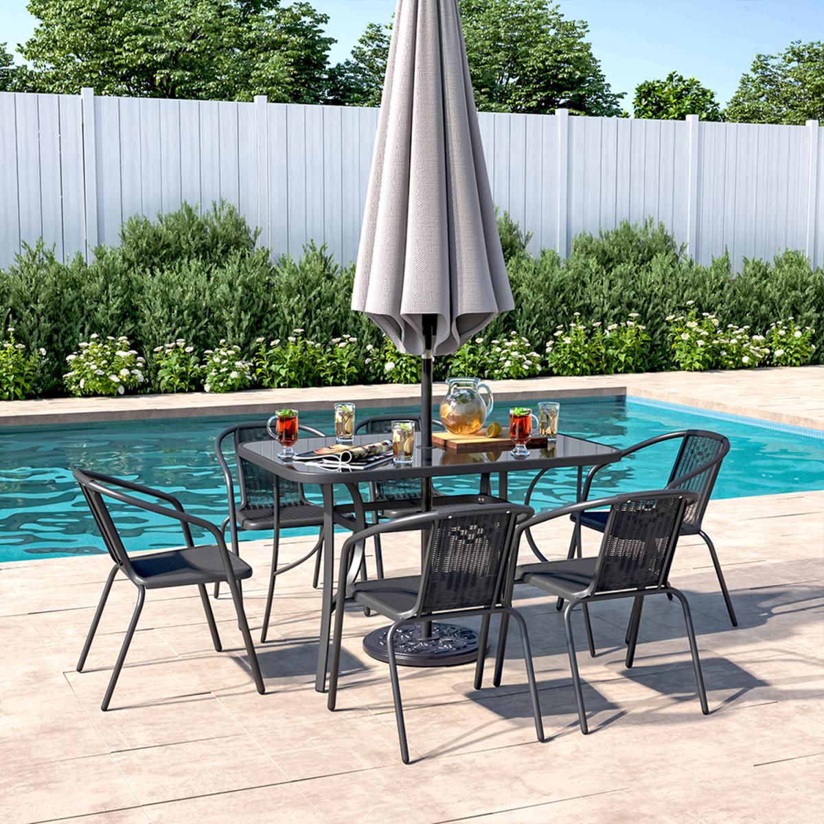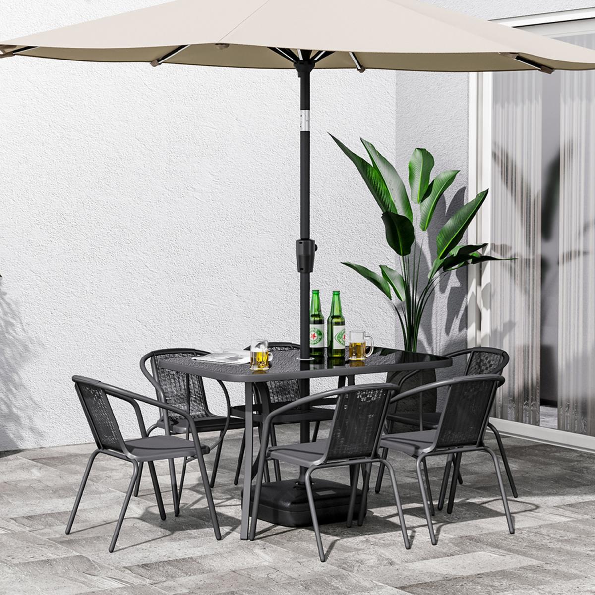 4 Person Rectangular Glass Top Table chairs Grey Parasol and Base - Black
